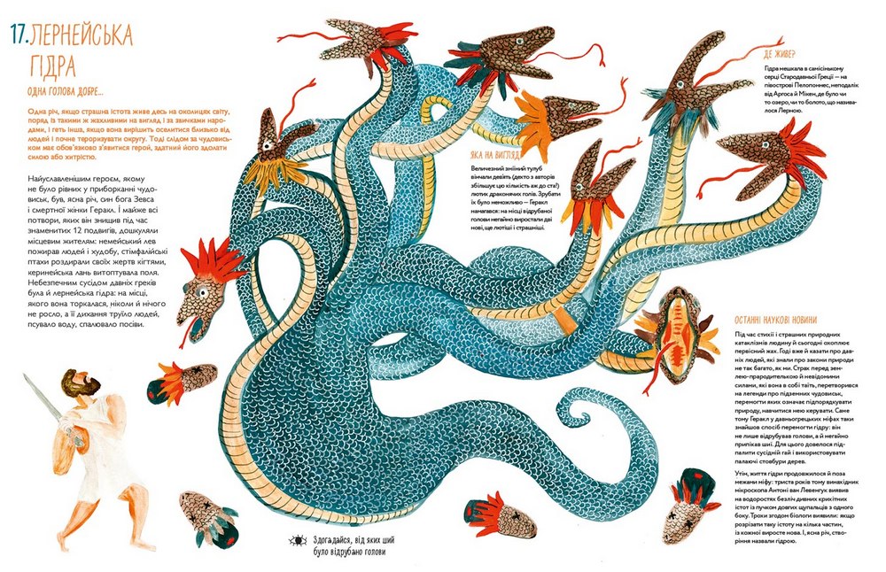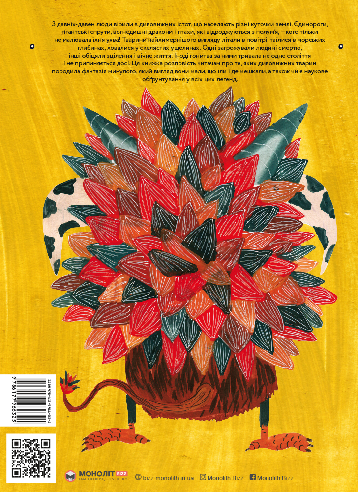 На сторінках цієї книжки ви побачите чимало вже відомих вам страхітливих істот, як-от Лернейська гідра, з якою боровся Геракл, чи птах Рух із казок «Тисячі й однієї ночі». Але, крім того, на вас чекає багато нового, адже тут зібрано відомості про фантастичних чудовиськ з усього світу! Кожного з них авторка Катерина Степаненко ретельно описала, а художниця Поля Плавинська їх намалювала. А ще — приготуйтеся пограти в цікаві ігри і виконати завдання, вміщені в цій книжці. Задоволення вам гарантоване!