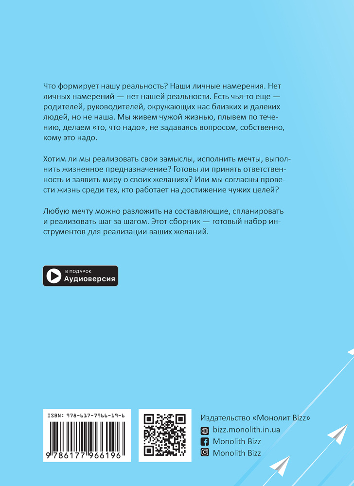 Що формує нашу дійсність? Наші особисті наміри. Немає особистих намірів – немає нашої реальності. За допомогою саммарі 12-ти світових бестселерів, які увійшли до цієї збірки, Ви зможете усвідомити свої цілі, спланувати реалізацію та досягти їх.