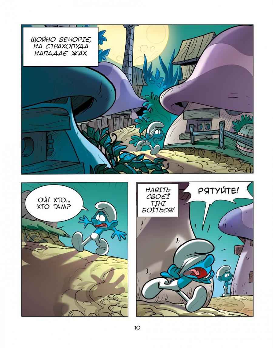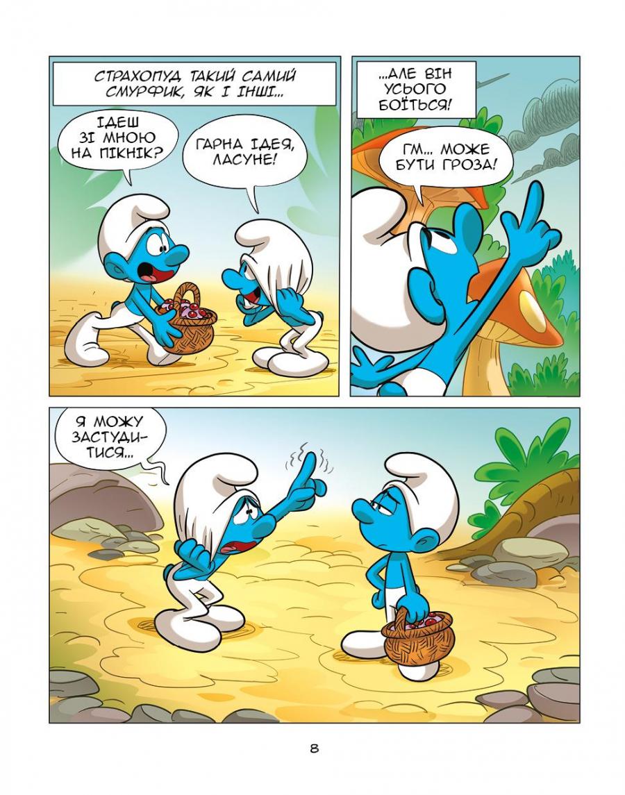 Це історія смурфика Страхопуда, якого лякає геть усе на світі: гроза, темний ліс, навіть маленький равлик! А найбільше Страхопуд боїться темряви, а через це не може спати уночі, та ще й заважає спати своїм сусідам. Чи зможе він подолати свій страх?