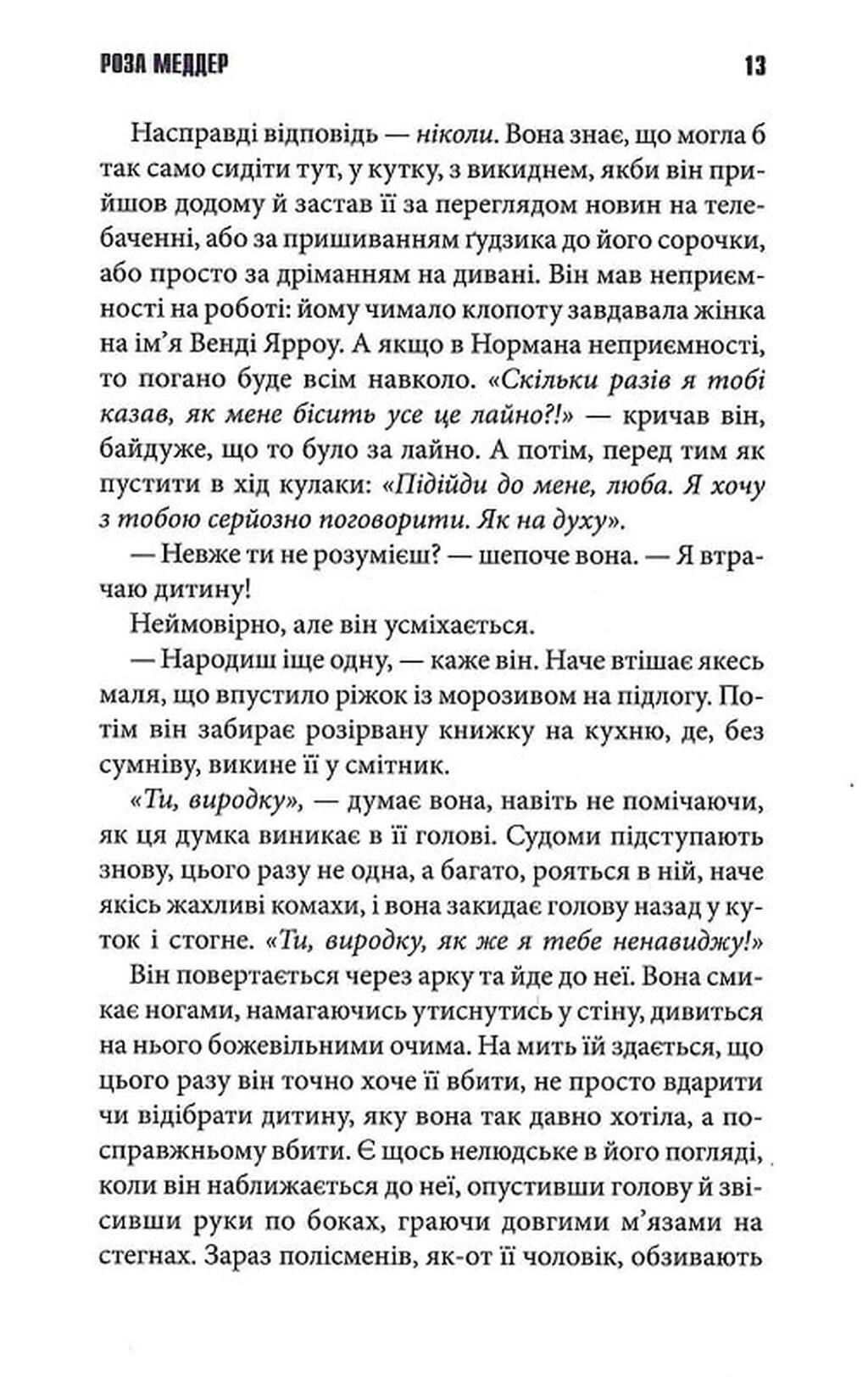 Роман Роза Меддер, написаний всесвітньо відомим автором Стівеном Кінгом, є глибокою містичною історією з елементами грецької міфології. Це захопливий трилер, який не залишить байдужим жодного читача. Після драматичних чотирнадцяти років у шлюбі з насильником, головна героїня Розі Деніелз вирішує зробити свій перший крок до свободи — втекти від чоловіка Нормана.