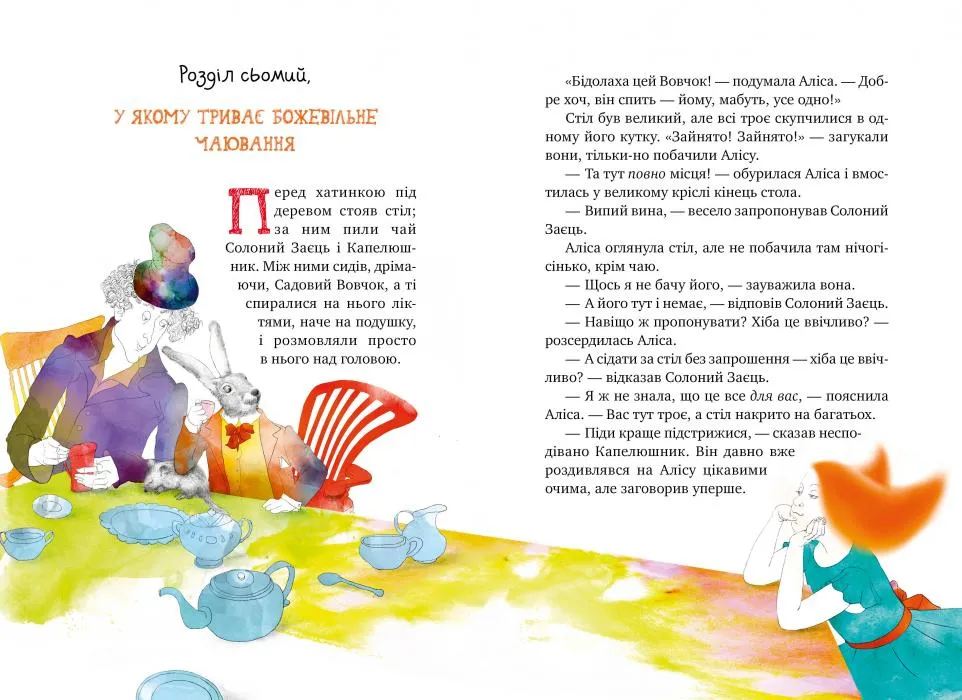 «Аліса в Країні Див» і «Аліса в Задзеркаллі» в довершеному перекладі Володимира Панченка сяють ще яскравіше завдяки талановитій художниці Тетяні Філатовій і кличуть в незвідану подрож і тебе, наш любий читачу!