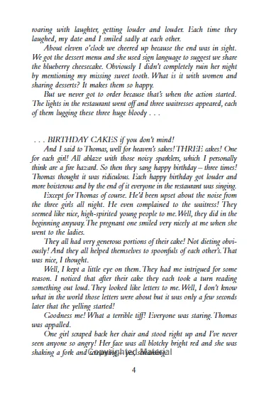 На сторінках роману ми знайомимось із сестрами Лін, Кет і Джеммою Кеттл. Усі вони народились в один день — трійню — і саме цього року їм виповнюється тридцять три. Попри зовнішню схожість, у кожної з них — свій характер, свої прагнення, свої внутрішні боротьби. Але зв’язок між ними настільки глибокий, що, здається, витримає будь-що. Аж до одного фатального вечора.