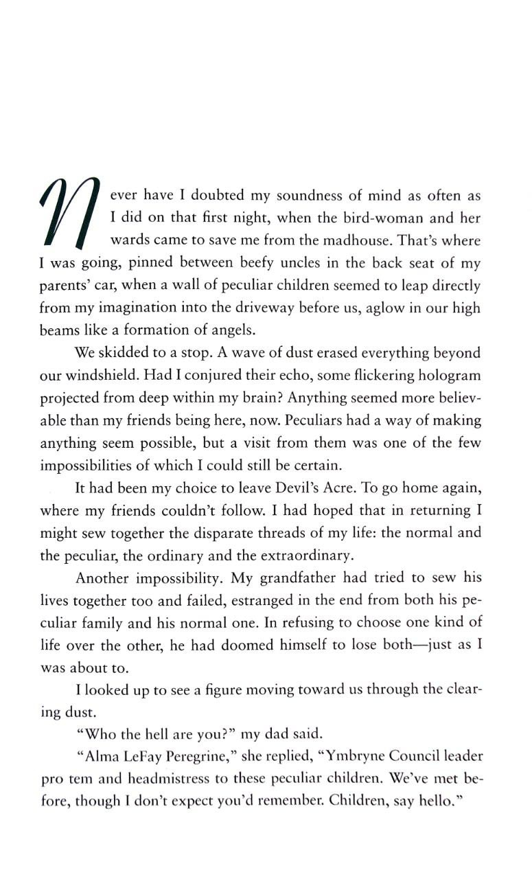 After the events of the previous book, the protagonist Jacob returns to his ordinary life in Florida. However, discovering a hidden room that once belonged to his grandfather sets him on a new journey across America with his peculiar friends. The world of peculiars has become even more dangerous, and the line between reality and fantasy continues to blur. Readers will uncover more about the origins of the peculiar children, as well as mysterious time manipulators and lurking enemies.