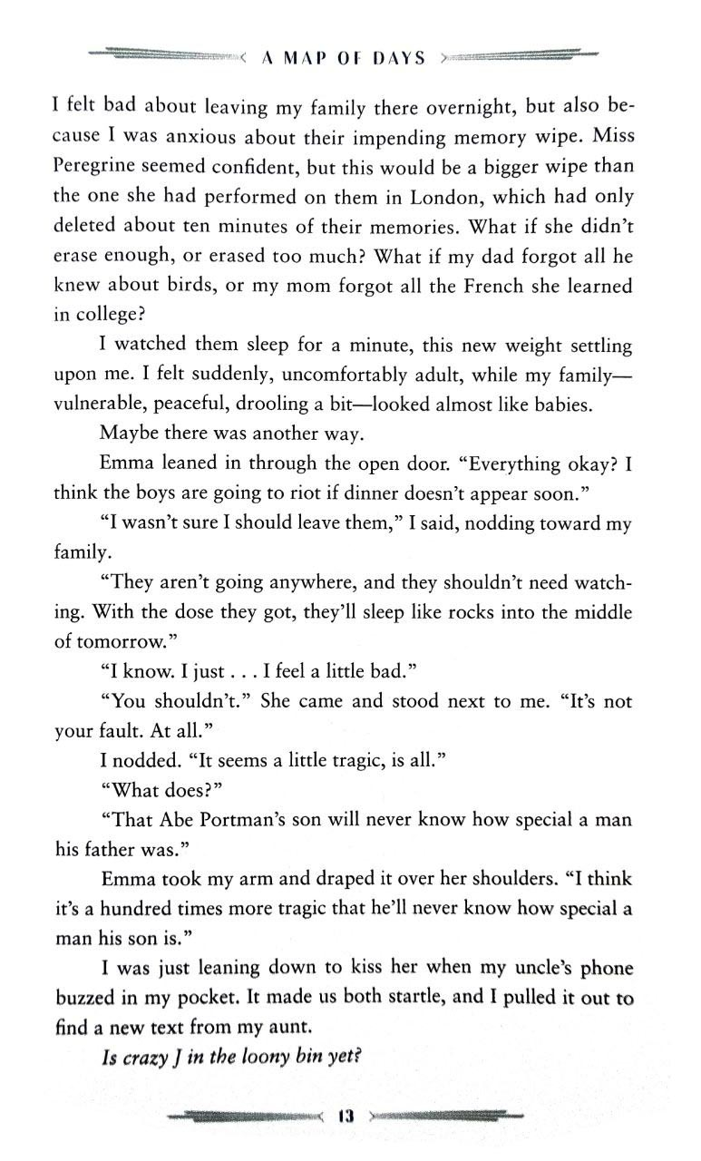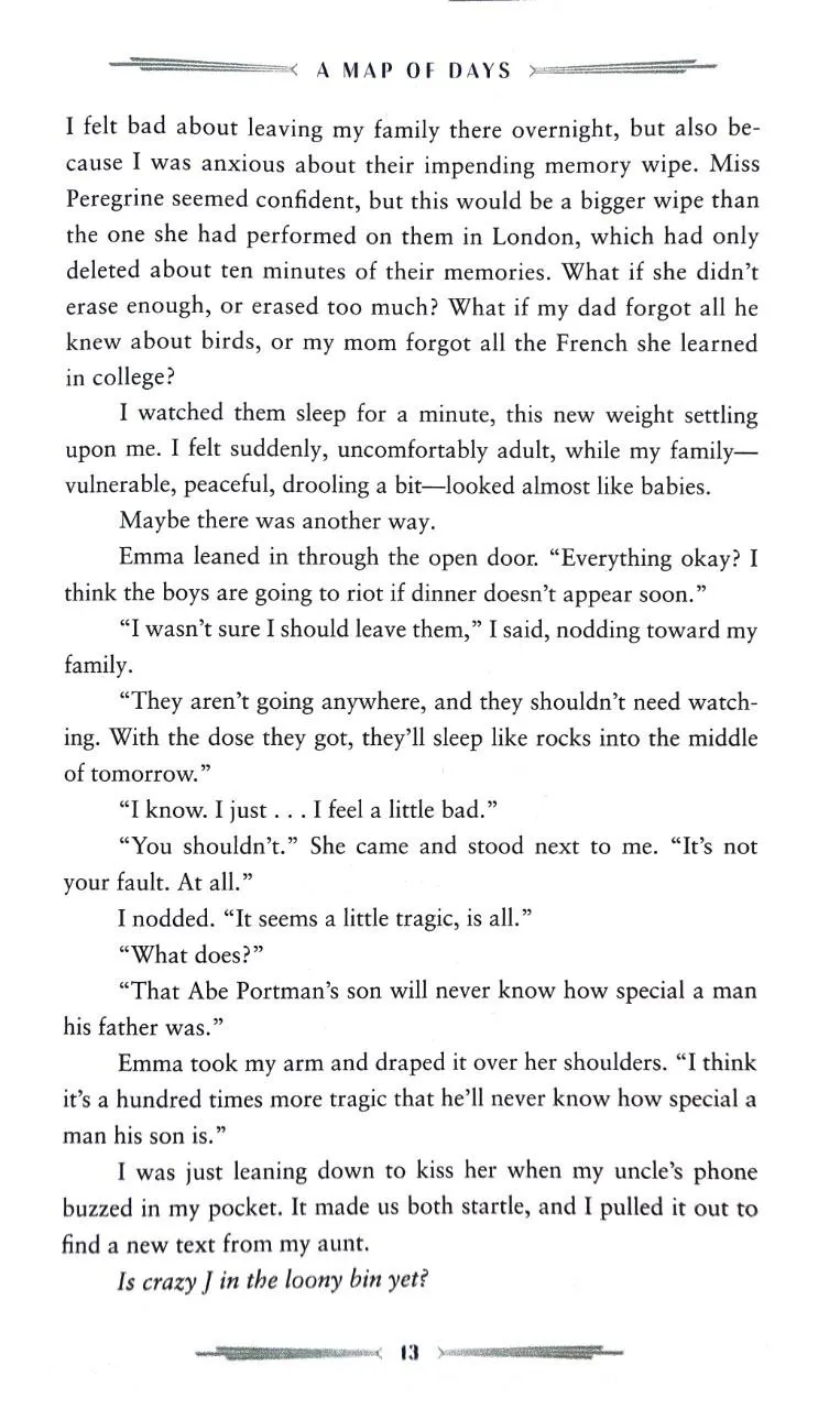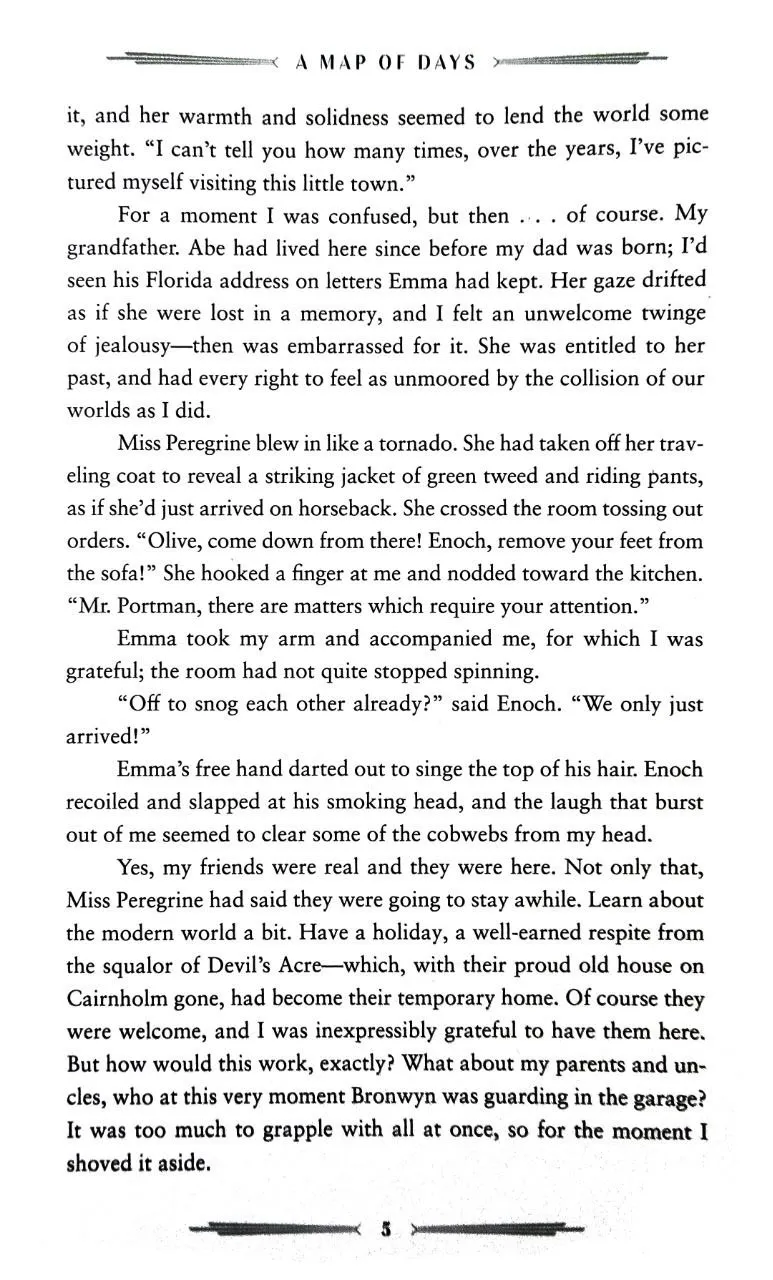 Роман A Map of Days — це четверта книга у популярній серії про Дім дивних дітей, яку написав Ренсом Ріггз. Ця частина відзначена неабияким стилем автора поєднувати фотографії з фантастичними елементами, створюючи унікальний та захоплюючий сюжет.