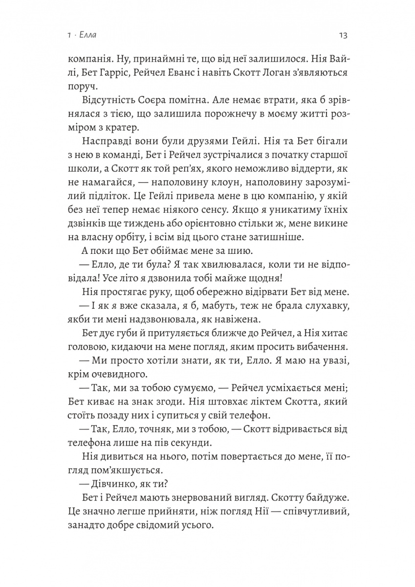 Особливе напруження створюється через почуття до Соєра — хлопця загиблої Гейлі. Між страхом і потягом Елла намагається втекти від складних емоцій та випадково натрапляє на щоденник подруги. Це відкриття змінює її бачення подій і людей навколо.