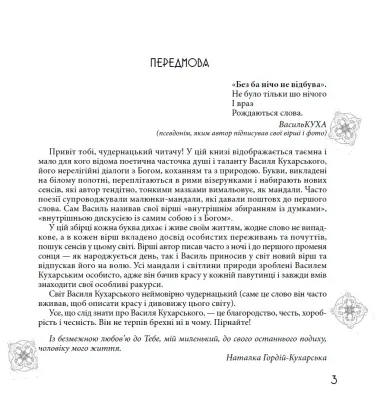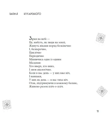 Автор створив інтимний простір, наповнений світлом і тінню, де гармонійно поєднується радість і сум, гумор і гіркота, мирне життя та реальні враження від війни. Василь Кухарський говорить про ті речі, які багато хто боїться або не вміє озвучити. Його поезія — лірична, правдива, іноді оголена до болю, але завжди щира.