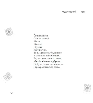 Завдяки унікальному поєднанню тексту та зображень, читач не просто читає — він переживає, відчуває, вдихає цей Чудернацький світ. Щось втрачається, щось з’являється, але сліди залишаються назавжди. Саме тому ця книга входить до бестселерів 2024 та 2025 років серед українських поетичних видань.