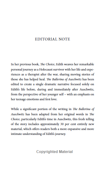 Edith Eger is a globally respected psychotherapist, author, and one of the few survivors of Auschwitz. Her earlier memoir The Choice received widespread acclaim and helped millions of people reframe their own lives. Now, with The Ballerina of Auschwitz, she adds a new layer of depth to her story, continuing to inspire readers worldwide.