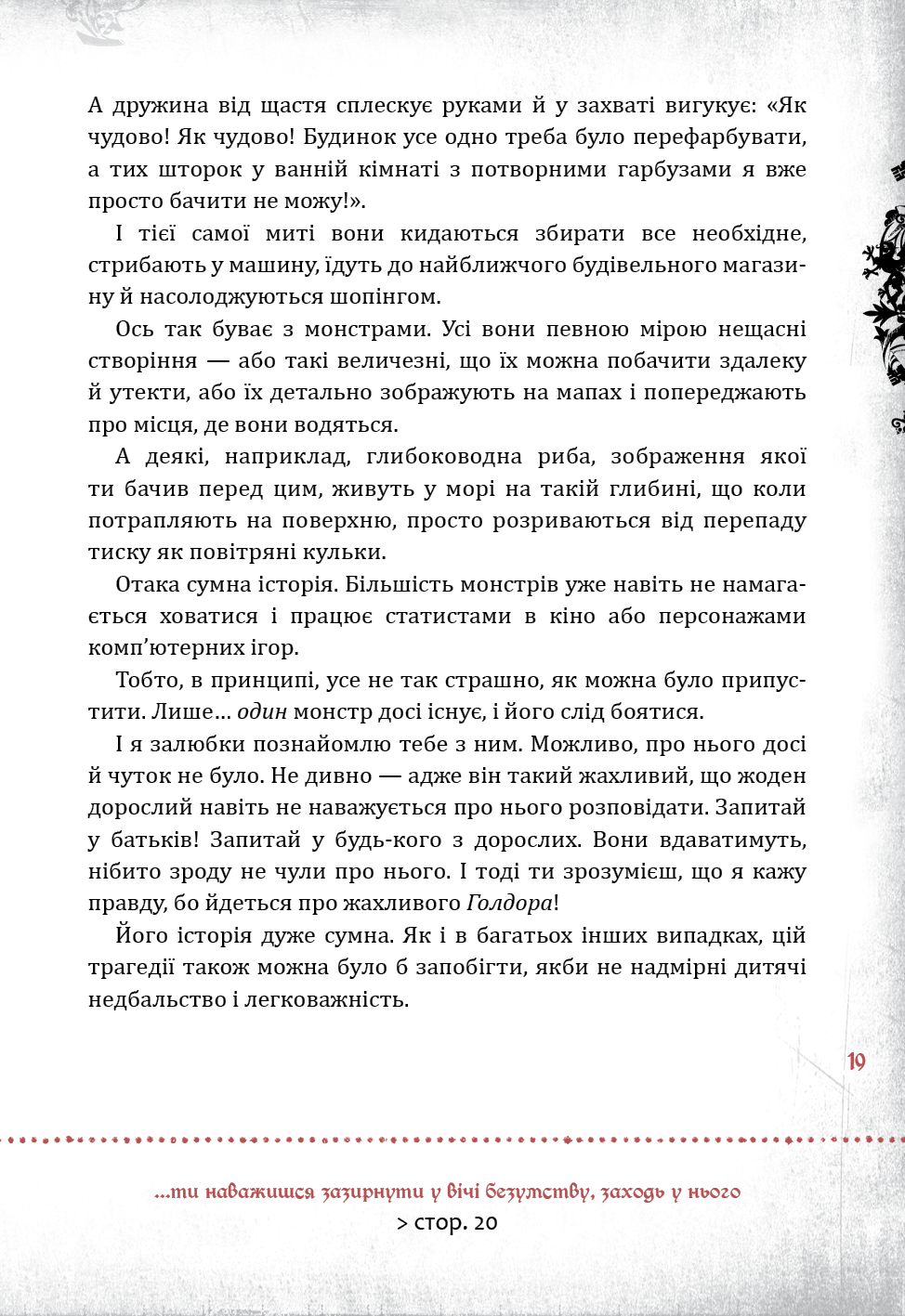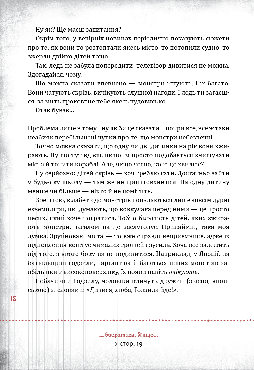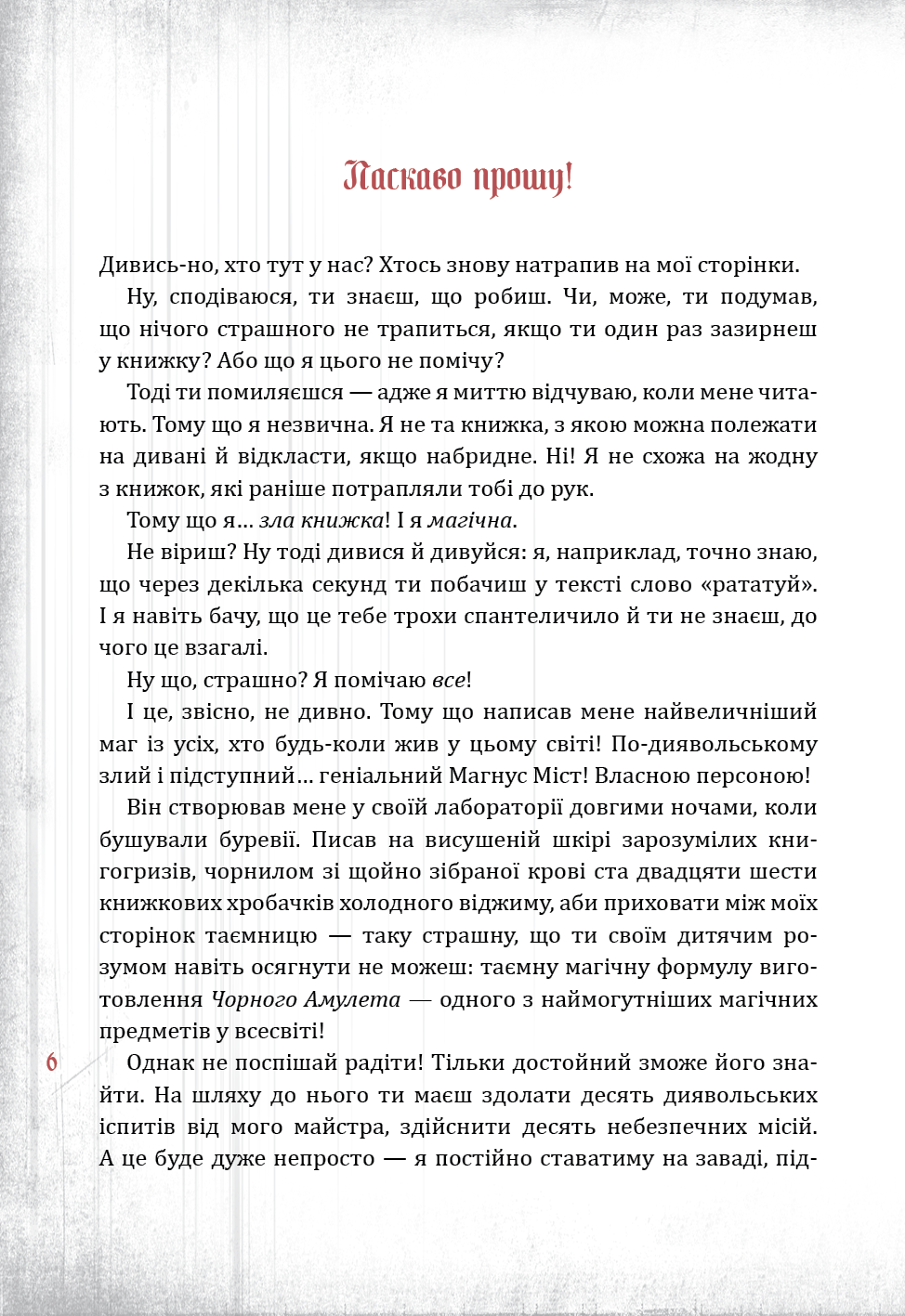На жаль, сталася страшна помилка. Ця книжка ніколи не мала бути надрукована. Зараз видавництво вивчає всі обставини того, як таке сталося. У книжці містяться магічні формули та слова, яких ніхто не має чути! Тут наведено лише зухвалу брехню й загадки, які спантеличують навіть дорослих. А на початку ще й копошаться монстри!