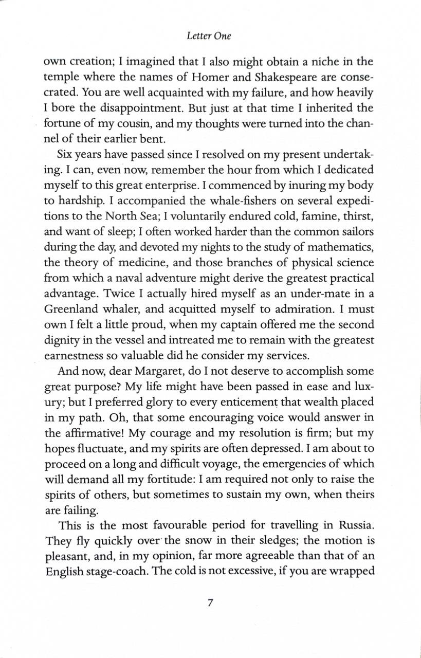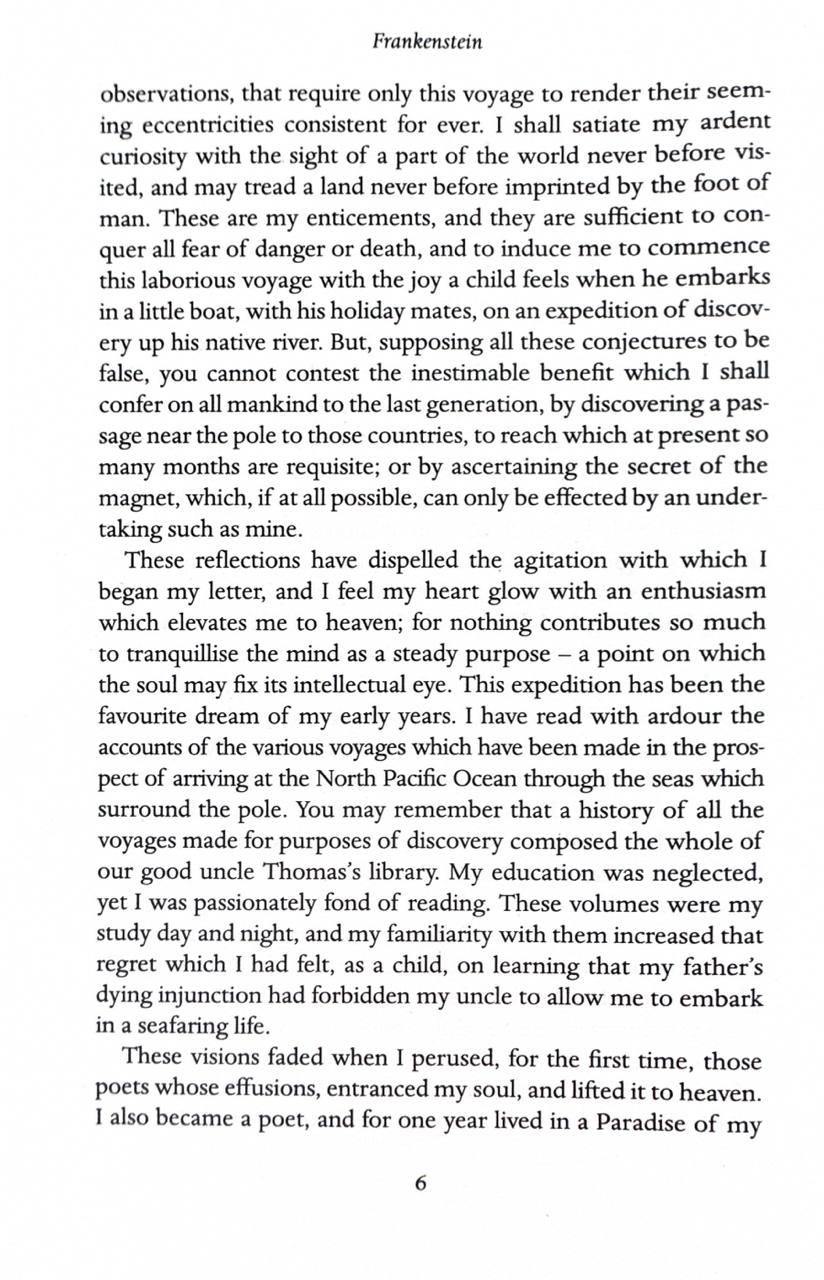 Перевернутий, спотворений міф про створення світу — моторошна готична історія Мері Шеллі, що викриває темний бік науки та жах, який живе в кожному з нас. Це історія Віктора Франкенштейна, який розкопує могили, щоб створити нову істоту з мертвих тіл — але його зіпсоване творіння приносить лише смерть і руйнування. Написаний після нічного жаху, коли авторці було лише вісімнадцять, Франкенштейн започаткував жанр наукової фантастики у сучасному розумінні.