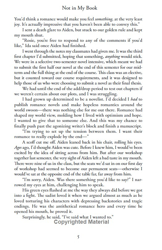 Rosie Maxwell has a plan: move to New York, get her creative writing degree from NYU, become a bestselling romance writer. But that plan is derailed when she ends up in class with her archnemesis and ex-crush, Aiden Huntington, an obnoxious, surly, unreasonably gorgeous literary fiction writer who has no patience for romance – or for Rosie.Exhausted by Rosie and Aiden’s constant verbal sparring, their professor gives them an ultimatum: leave her class, or cowrite a novel that blends their respective genres.As Rosie and Aiden collaborate on their (accidentally steamy) novel, they try to put their differences aside. Could their manuscript-in-progress be just the outlet they need to confess their feelings – and explore their mutual attraction?But a potentially career-changing opportunity soon reignites the flames of their old rivalry. Rosie and Aiden’s once-in-a-lifetime love story is once again at risk of being shelved – unless they can find a way to end the book on their own terms . . .