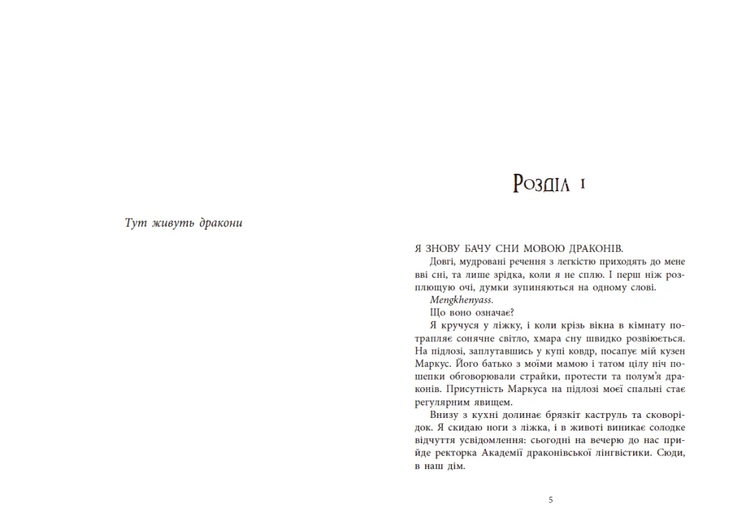 Фентезі-роман Мова драконів став справжнім бестселером серед молодіжної літератури. Ця книга поєднує в собі альтернативну історію, елементи політичного трилера, соціальної критики та класичне фентезі. Авторка майстерно переносить читача у вигаданий Лондон 1923 року — місто, де в небі ширяють дракони, а суспільство ділиться на класи не лише за соціальним, а й за мовним бар’єром.