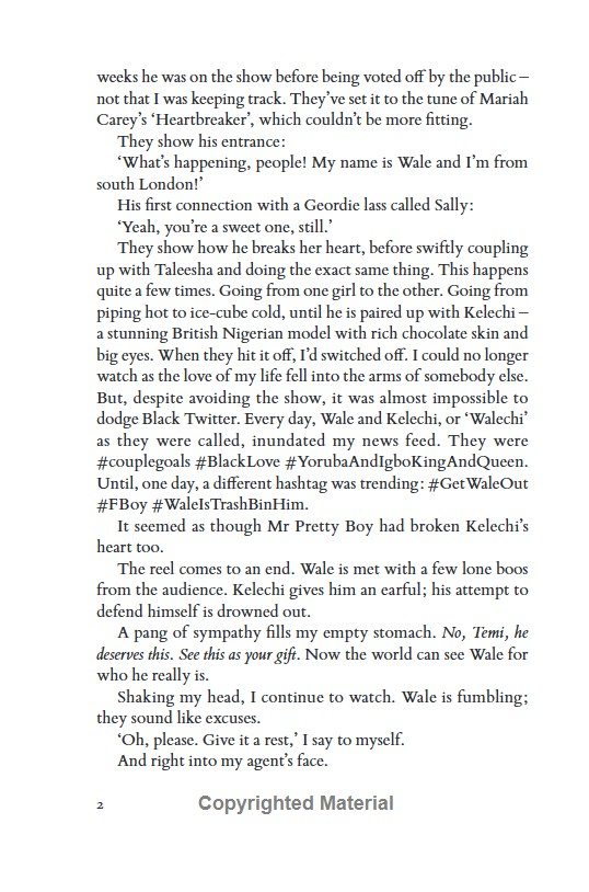 Temi and Wale meet in London. They flirt, date, meet each other's friends.. . . Then Wale dumps Temi to go on Love Villa.Instead of giving in to heartbreak, Temi throws herself into her dream: writing. She's within touching distance of a book deal that would solve all her problems. But publishers keep passing on her novel and bills still have to be paid. So, when the opportunity to ghost-write a celebrity memoir arises, Temi finds herself accepting.And, of course, the celebrity turns out to be Wale...Has too much time passed . . . or just enough to spark a whole new kind of relationship?