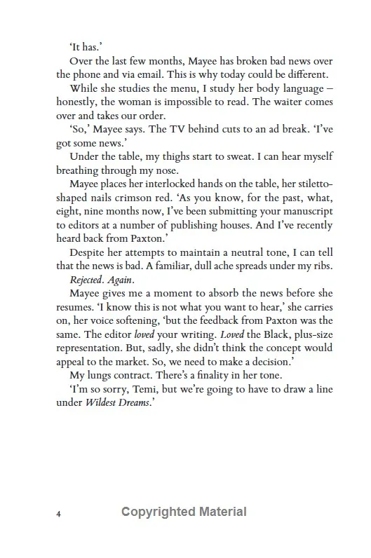Замість того щоб потонути в розбитому серці, Темі поринає в свою мрію — написання книги. Вона вже майже дісталася до мети: видавнича угода, яка б вирішила всі її проблеми, зовсім поруч. Але видавці один за одним відмовляють, а рахунки продовжують накопичуватися.