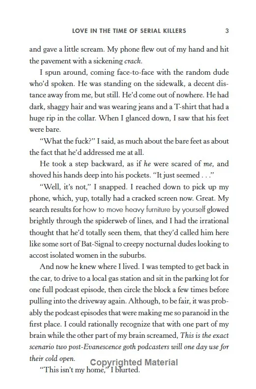 PhD candidate Phoebe Walsh has always been obsessed with true crime. She's even analysing the genre in her dissertation - if she can manage to finish writing it. It's hard to find the time while she spends the summer in Florida, cleaning out her childhood home, dealing with her obnoxiously good-natured younger brother, and grappling with the complicated feelings of mourning a father she hadn't had a relationship with for years.It doesn't help that she's low-key convinced that her new neighbour, Sam Dennings, is a serial killer (he may dress business casual by day, but at night he's clearly up to something). But it's not long before Phoebe realises that Sam might be something much scarier - a genuinely nice guy who can pierce her armour to reach her vulnerable heart.