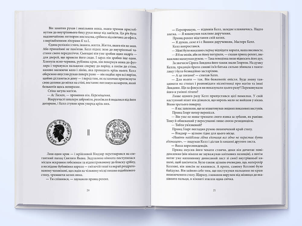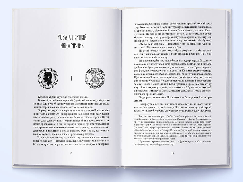 Келл ніколи не помічав, що Червоний Лондон лишав по собі ледь відчутний запах на його одязі. Проте після подорожей дехто говорив йому, що він пахне свіжозірваними квітами. Хтось казав, що тюльпанами. Інші — ліліями. Хризантемами. Півоніями. А для короля Англії це завжди були троянди. Келл радів, що це приємний запах, навіть якщо не відчував його. Він міг розрізнити запахи Сірого Лондона (дим) і Білого Лондона (кров), але Червоний Лондон завжди пахнув для нього просто домом.