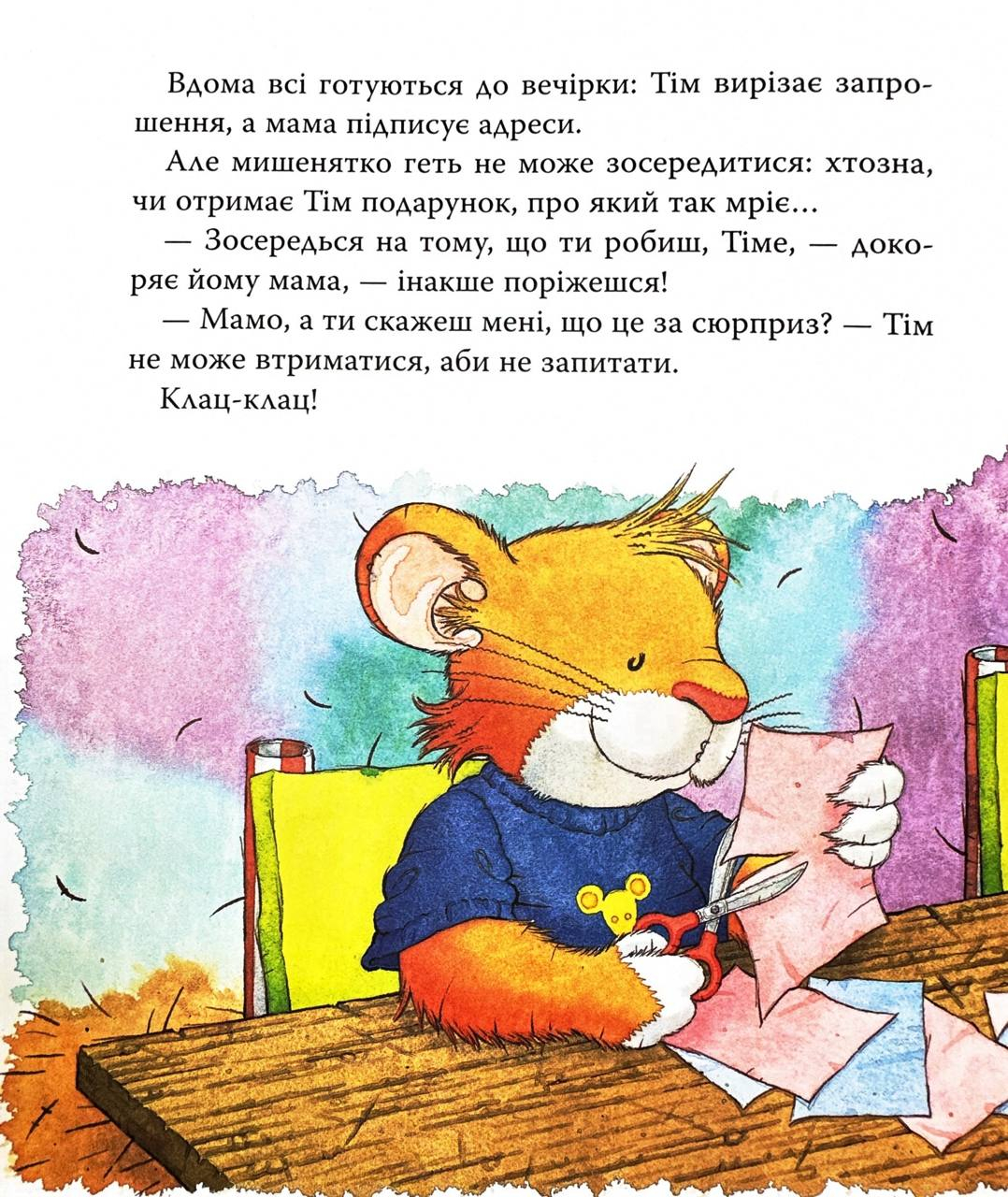 Цього разу на мишеня чекає особливий день — його день народження. Але радість переплітається з хвилюванням. Тім мріє про щось дуже особливе, і це викликає емоційні сплески. Як і будь-яка дитина, він влаштовує істерики, але поруч — уважна й чуйна мама. Вона знає, як заспокоїти свого сина й допомогти йому знову стати лагідним і щасливим мишеням.