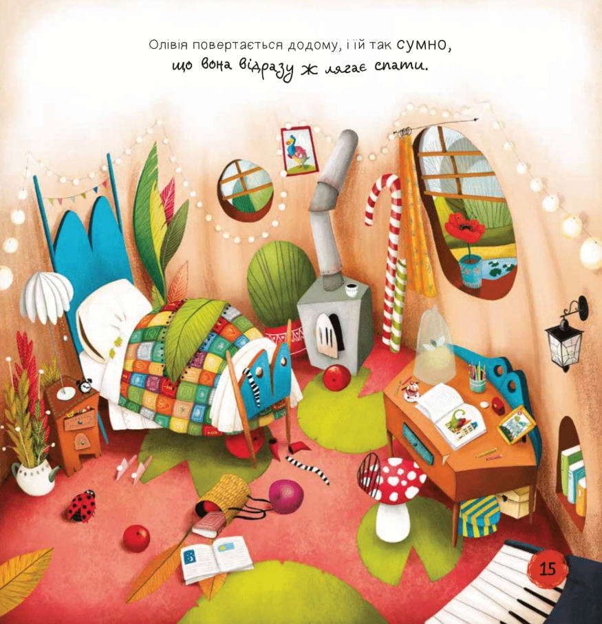 На сторінках книги діти дізнаються, що навіть найпохмуріший ранок може завершитись яскравим святом, якщо подивитися на світ з іншого боку. Авторка вчить помічати маленькі радощі, цінувати дружбу та щирі емоції.