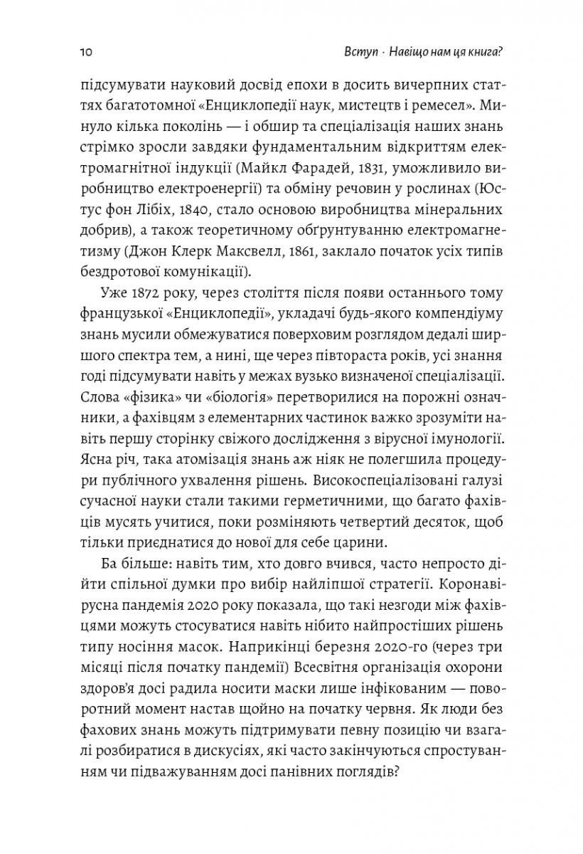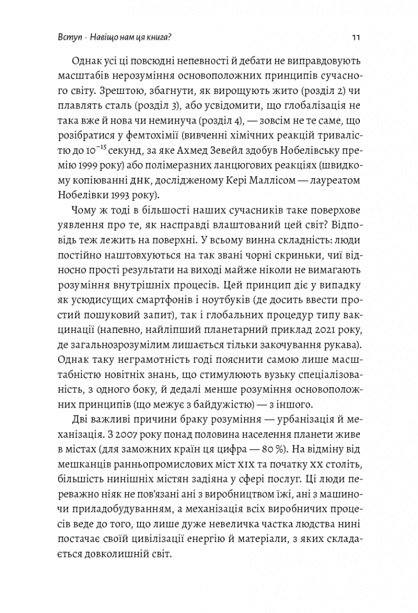 Упродовж книги Вацлав Сміл намагається показати читачам, чому важливо опиратися на науку, а не на спрощені уявлення. Завдяки цьому книга буде корисною як для студентів, так і для досвідчених керівників, політиків, освітян чи просто допитливих людей.