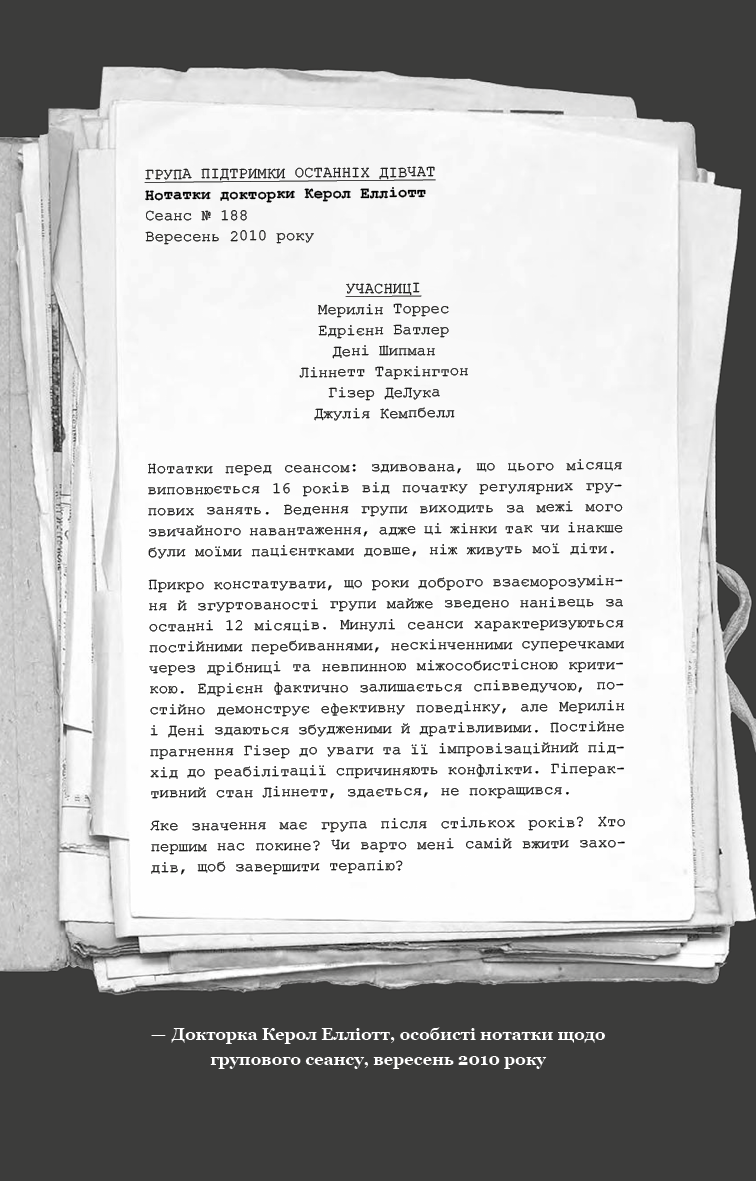 Якщо ви шукаєте напружену історію з глибокими темами та несподіваними поворотами, роман Група підтримки останніх дівчат — саме те, що потрібно. Замовляйте зараз та пориньте в атмосферу справжнього психологічного жаху.
