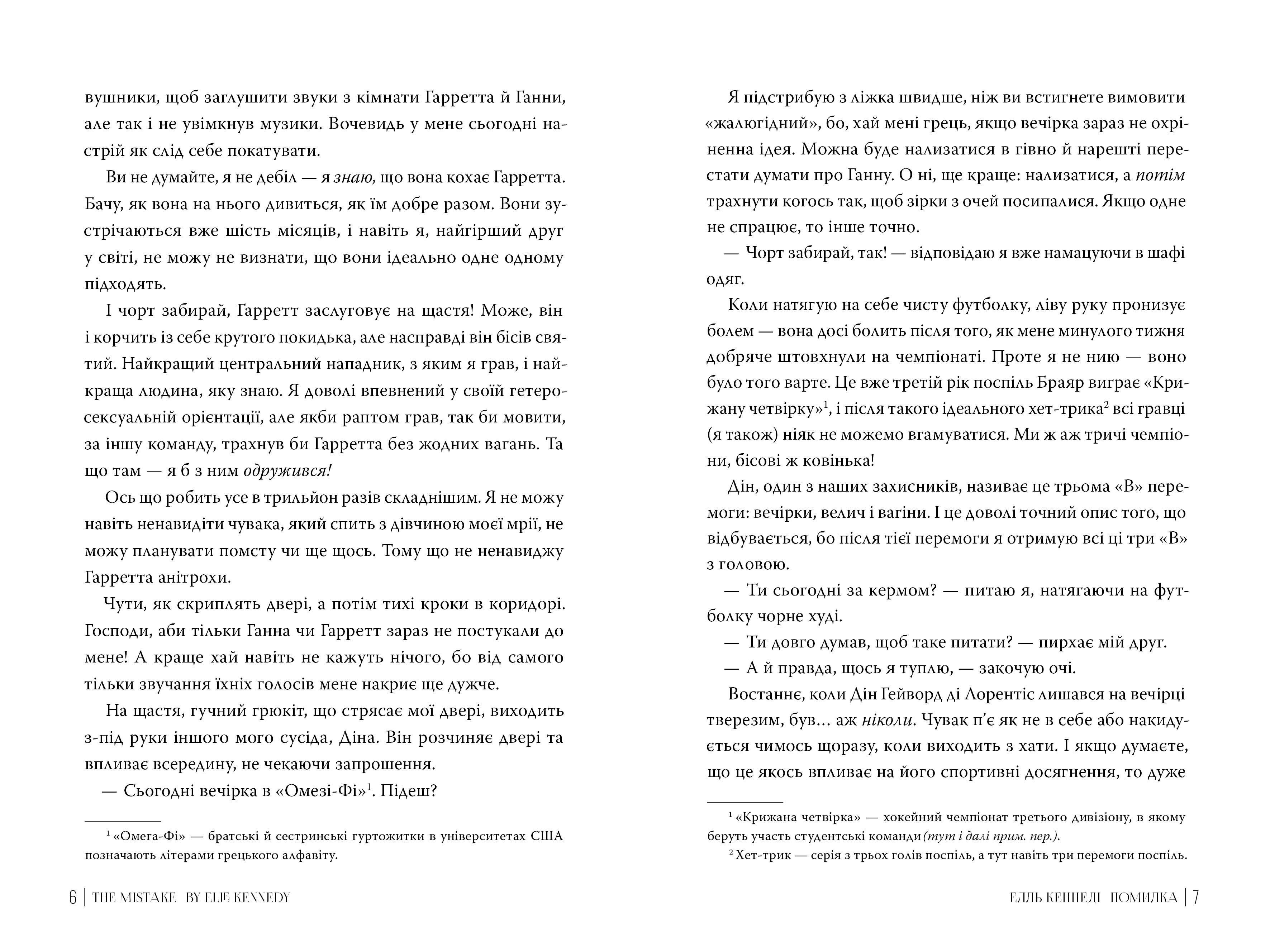 Якщо ви шукаєте захопливу романтичну історію з гумором, драмою та яскравими емоціями, то книга Помилка від Елль Кеннеді стане чудовим вибором. Це друга частина популярної серії Поза кампусом, яка зробила авторку справжньою зіркою серед сучасних романістів. У центрі сюжету – Джон Логан, зірка студентського хокею, та Ґрейс Іверс, першокурсниця, яка несподівано змінює його життя.