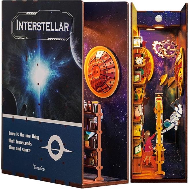 Бук нук Interstellar TQ110 — це оригінальна мініатюрна декорація у форматі вузької книжкової вставки, яка перетворює звичайну полицю на чарівний світ фантазії. Ця модель натхненна темою космосу, досліджень Всесвіту та наукової фантастики. Вона стане незвичайним подарунком для шанувальників космічних пригод і унікальним доповненням до книжкової колекції.