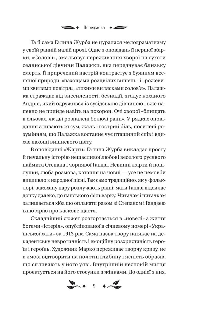 Галина Журба — відома українська письменниця, яка творила на рубежі XIX та XX століть. Її твори глибоко емоційні, стилістично вишукані та надзвичайно зворушливі. Її літературна спадщина включає низку прози, що стала класикою української літератури.