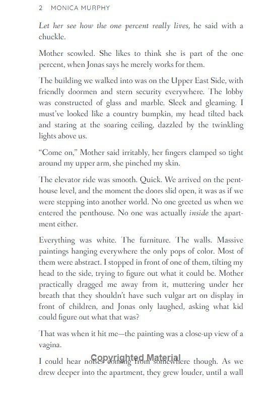 Whit Lancaster burst into my life like a storm. The school with his family name on the sign. He can do no wrong here. This is his domain. He's a menace on campus. Yet his intense gaze fills me with a longing I don't understand. When he comes to my rescue one night, I welcome him into my room only for him to leave me alone in the night, taking my journal with him. Now he knows my secrets. And he promises to use them against me. I'll be ruined if my darkest secret gets out. So I made a deal with him . . .