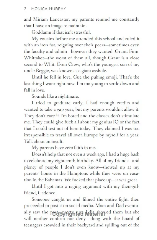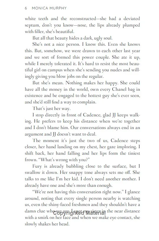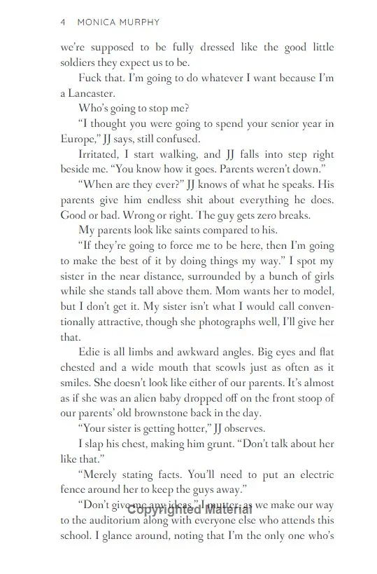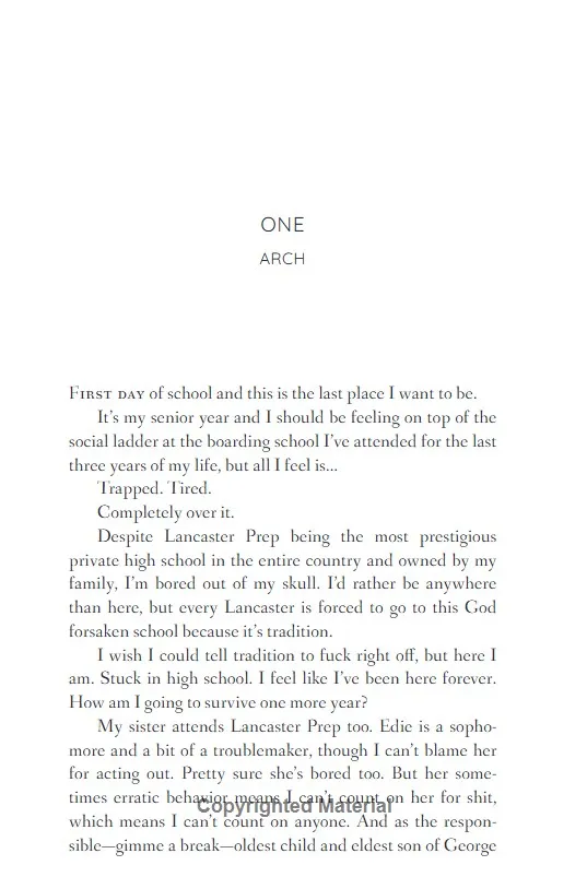 Nobody in our class pays attention to Daisy Albright and I think she likes it that way.But when I'm sent to work in the headmaster's office every day with Daisy I am stuck staring at her pretty face, hearing her sweet voice and I start to make her laugh.The more I get to know her, the more obsessed I become. And I think she feels the same way.The problem? She's not part of my crowd. No one approves of us together. Not my friends, not my parents and not her father.