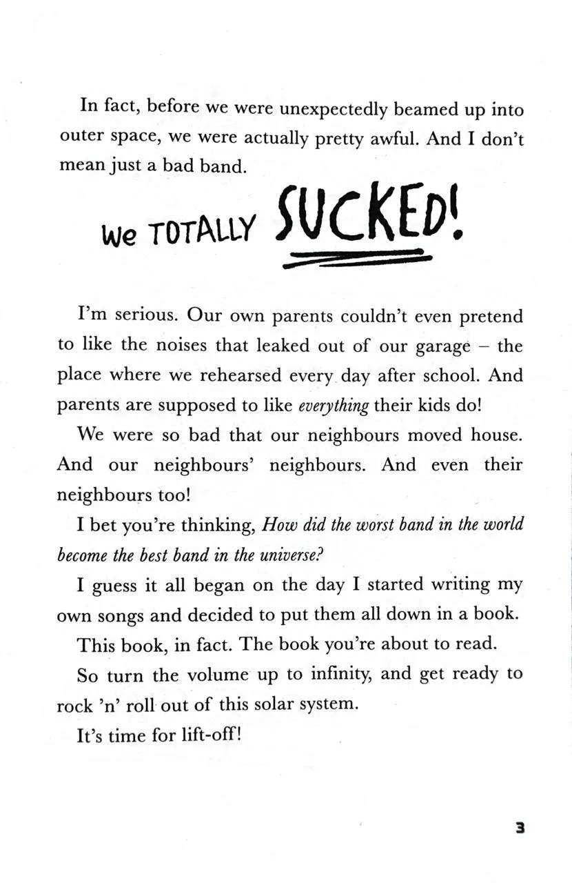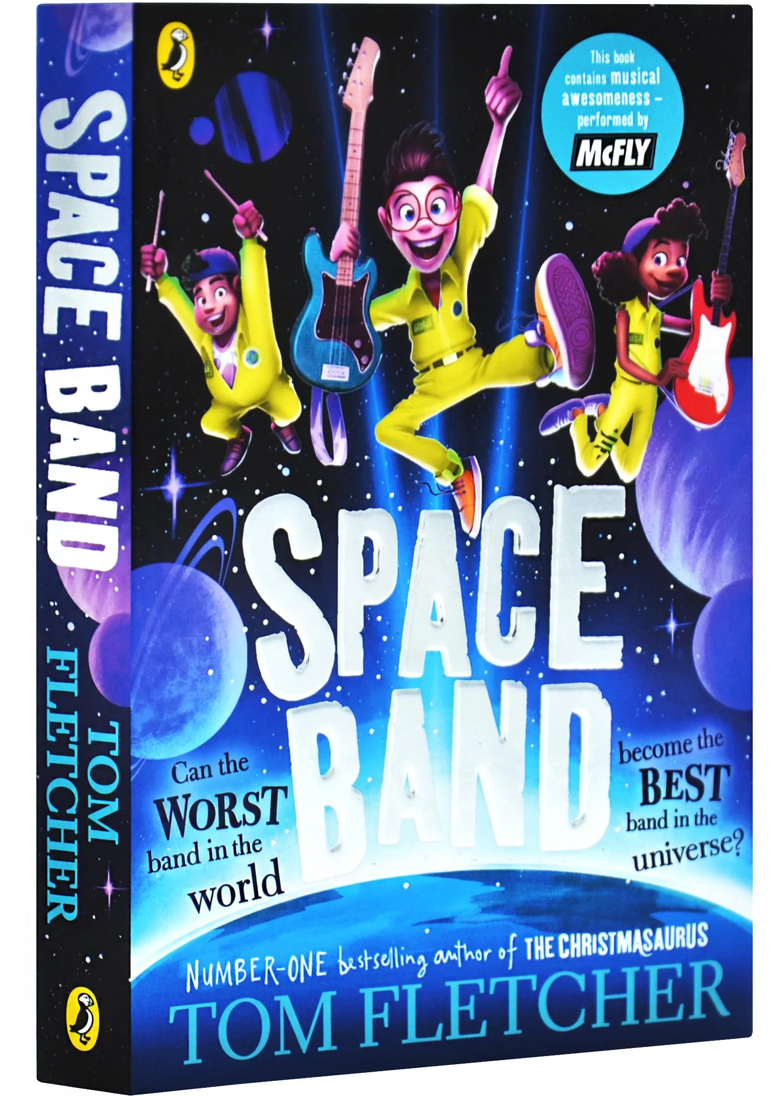 An out-of-this-world new adventure from bestselling author of THE DANGER GANG and THE CHRISTMASAURUS, Tom Fletcher.George, Neila and Bash are the worst band on Earth. George wants them to be brilliant - but Neila has stage fright, and Bash is too distracted by his obsession with stars, aliens and faraway planets. But what they lack in talent and confidence, they make up for in heart.They're determined to blow their friends away at their school Battle of the Bands contest. But the moment they start to play...They're beamed up into space!!!Now the kids face an even bigger challenge: Battle of the Bands, but the intergalactic version. They're competing against alien bands from every galaxy! And if they don't win, they might never make it home again... Can the worst band on Earth become the best band in the universe?Listen to the intergalactically awesome SPACE BAND soundtrack now, performed by McFLY!