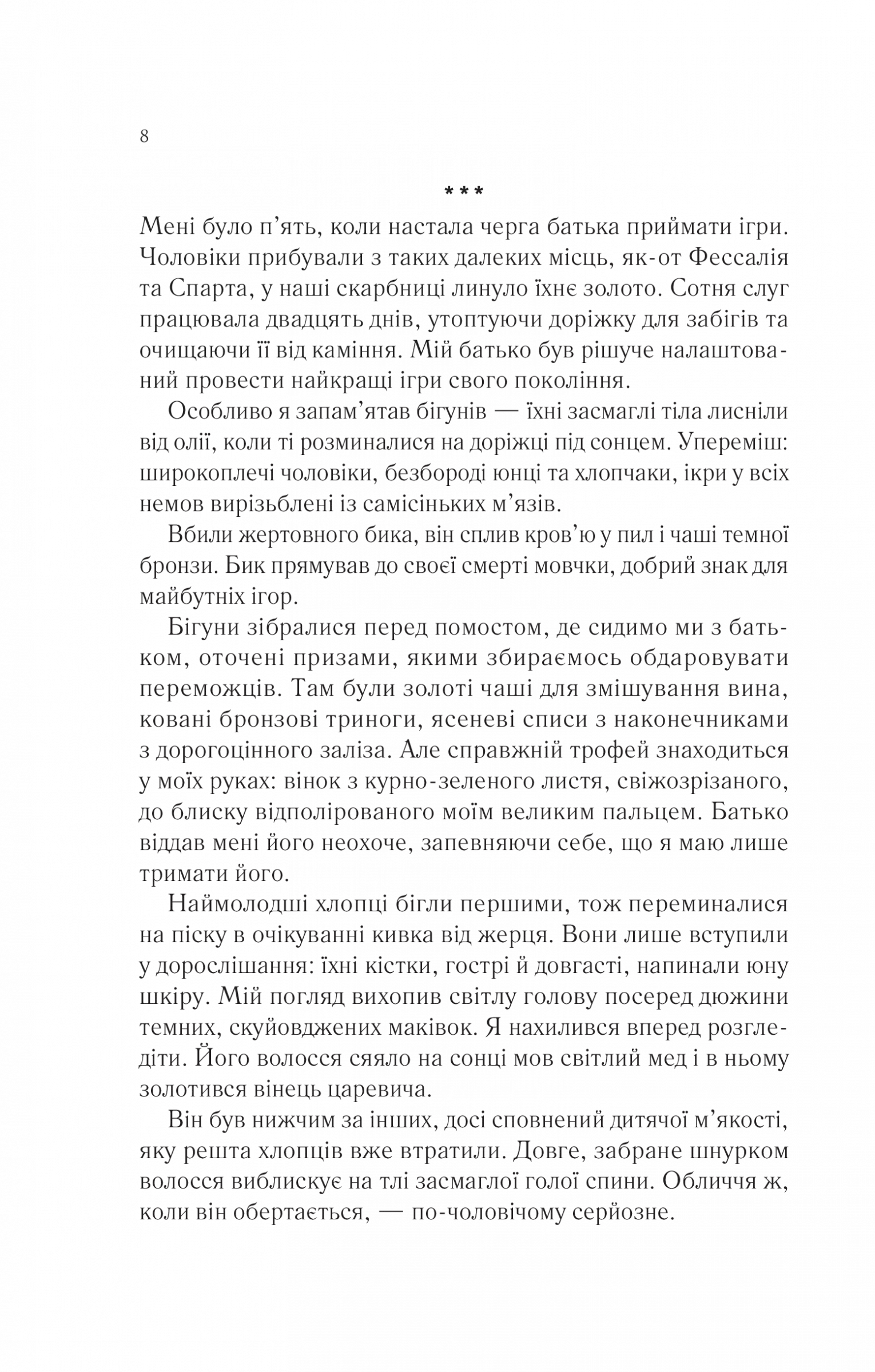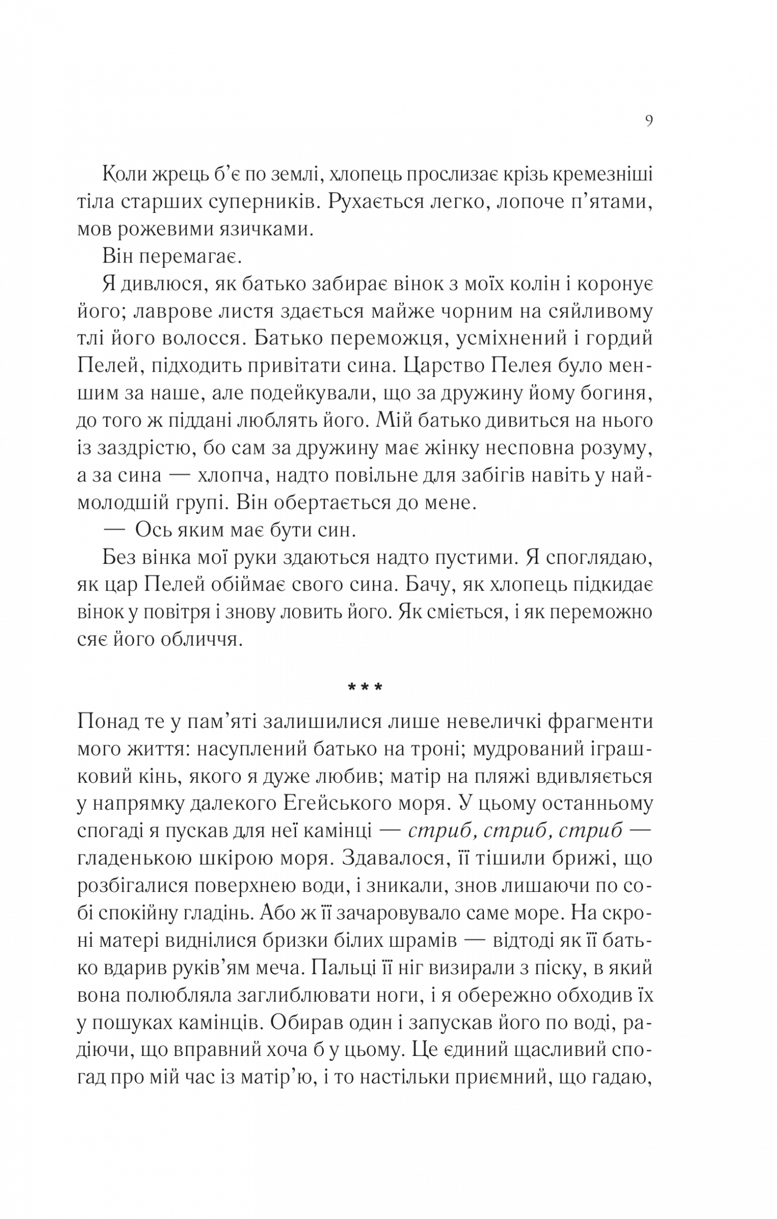 Та коли над Грецією нависає війна, а Ахілла кличе слава, на них чекає шлях, сповнений випробувань. Їхнє кохання — ніжне й віддане — опиняється у вирі битв, честі, жорстокої слави й вибору, який назавжди змінить хід історії.