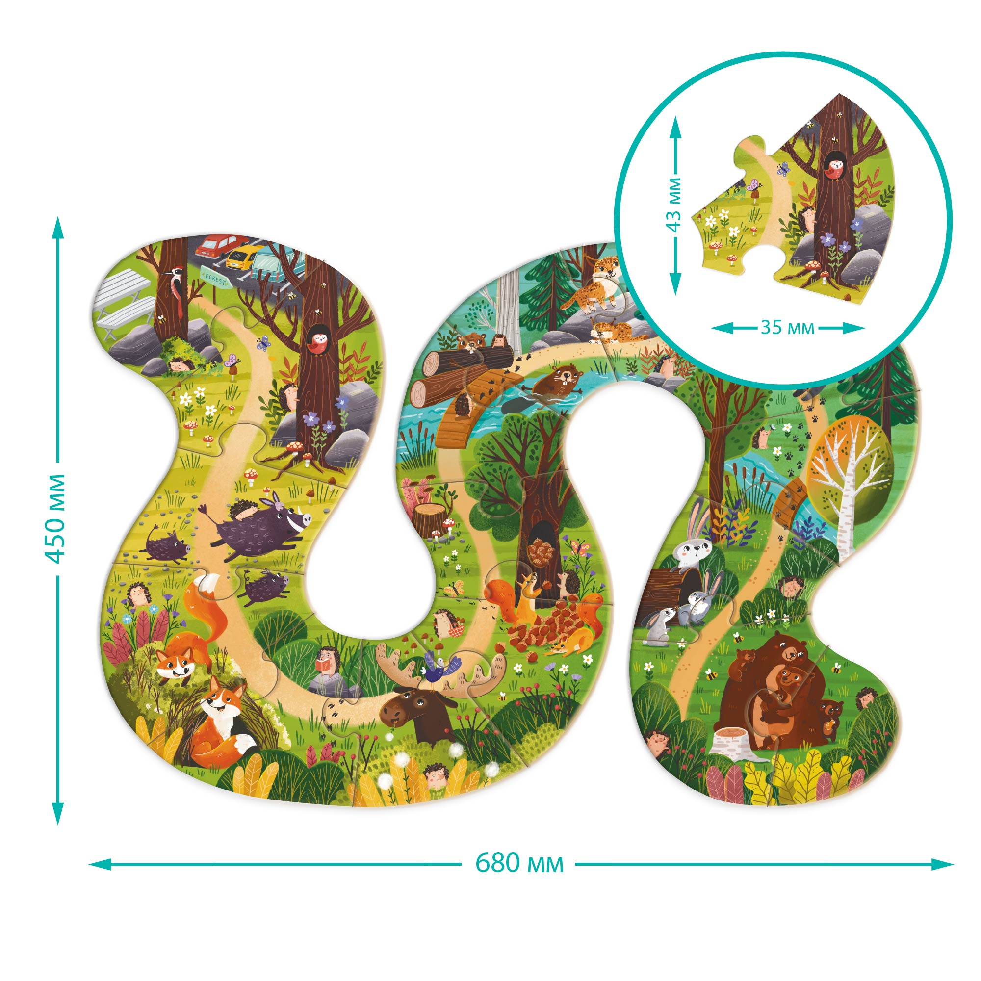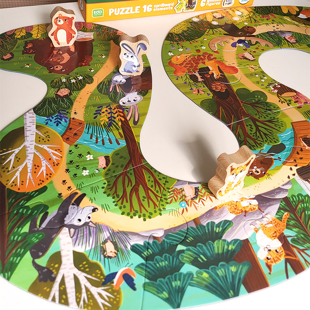 Пазл складається з великих і зручних деталей, які ідеально підходять для маленьких ручок. Всі елементи виготовлені з міцного та безпечного картону. Малюнки на тематику тварин лісу знайомлять малюків із фауною, розширюючи кругозір та словниковий запас.