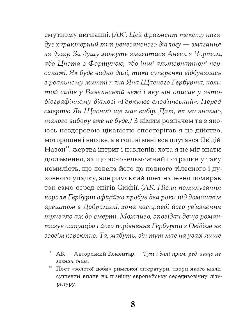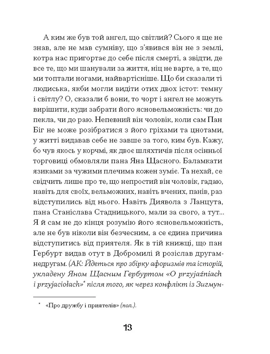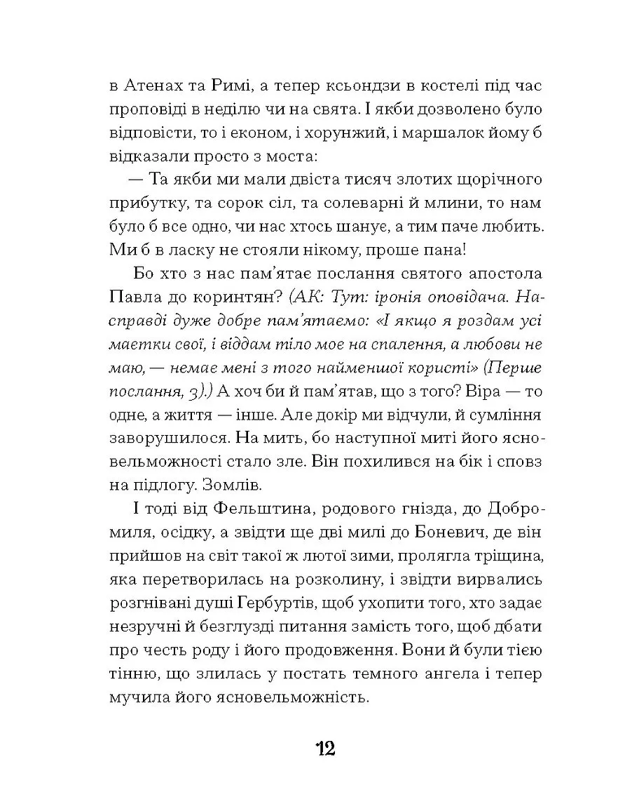 У творі авторка майстерно поєднує психологічну напругу з роздумами про історичну пам’ять, ідентичність та внутрішні конфлікти особистості. Северин, у спробі пізнати покійного і себе самого, відкриває світ Добромильської околиці — простір, де живе історична тінь Гербурта і зароджуються нові сенси буття.