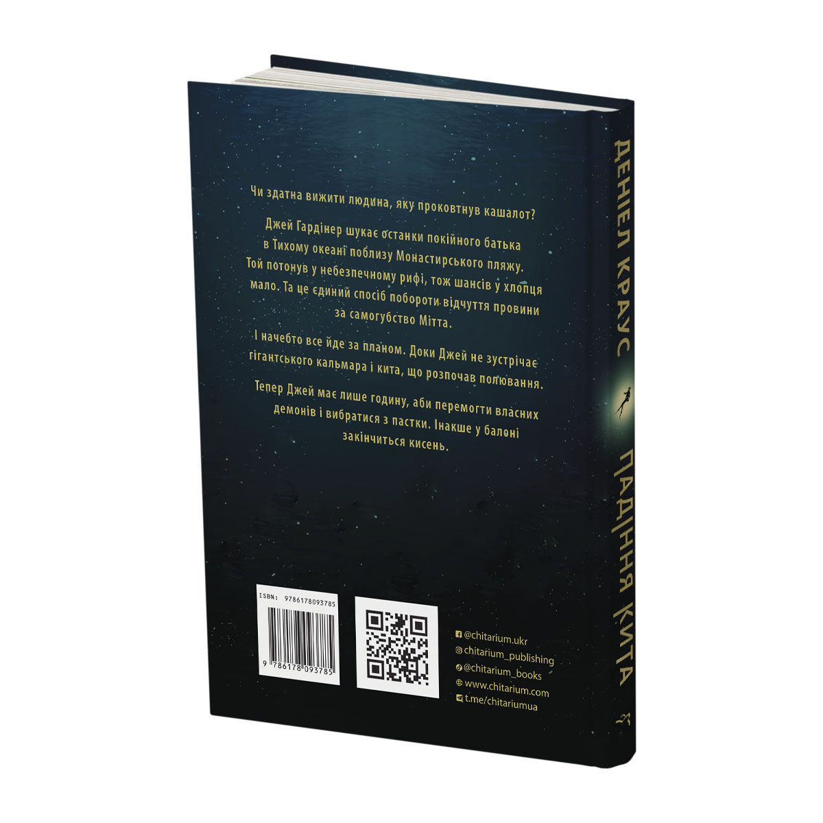 Книга Падіння кита — новий твір Деніела Крауса, який кидає читача у глибини океану та психологічних переживань. Сюжет обертається довкола Джея Гардінера, хлопця, що вирушає у смертельно небезпечну місію в Тихий океан. Його мета — знайти останки покійного батька, який загинув у рифі неподалік Монастирського пляжу. Це не лише спроба прощання, але й останній шанс побороти глибоке почуття провини за втрату батька.