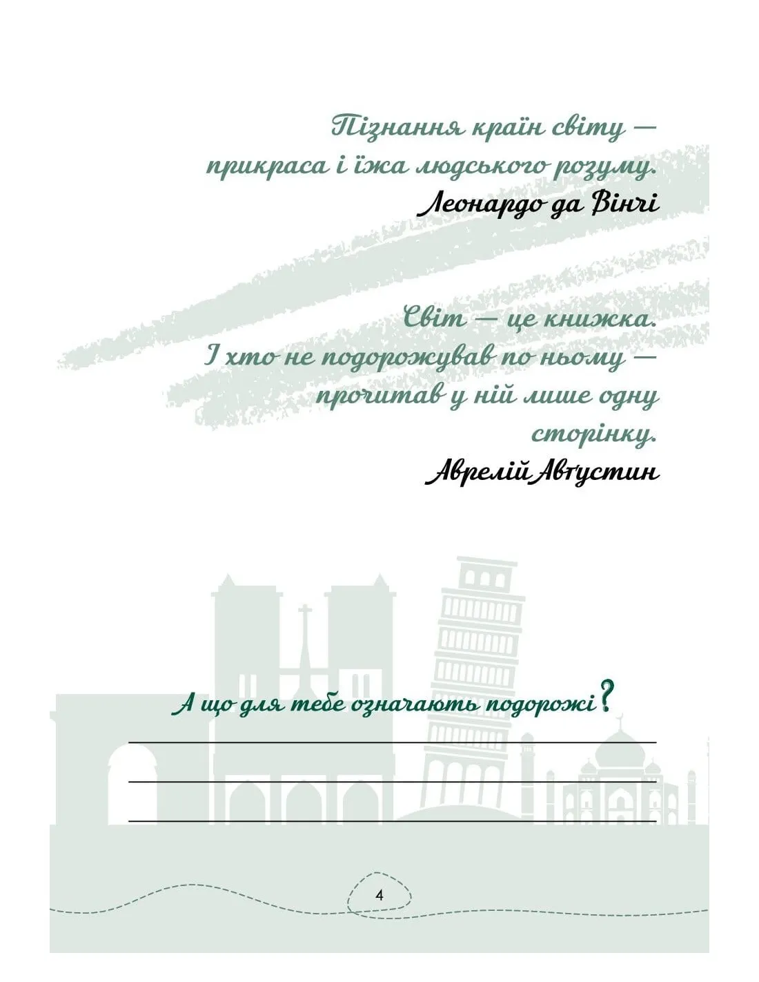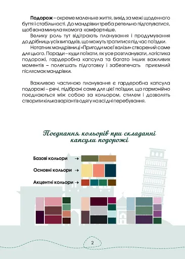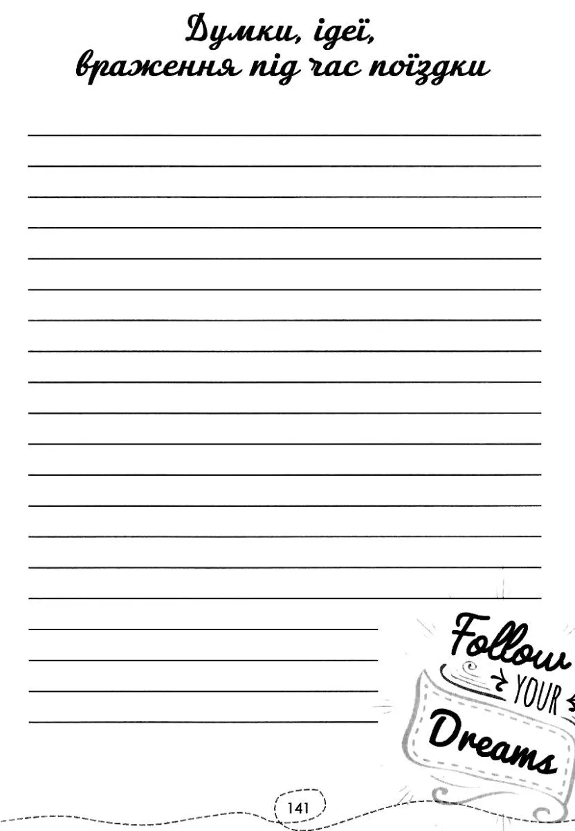 Як спланувати поїздку?ПОДОРОЖ – маленьке щоденне життя, вихід за межі щоденного буття і стабільності. До мандрівки треба ретельно підготуватися, щоб вона минула якомога комфортніше.Велику роль тут відіграють планування і продумування до дрібниць усіх випадків, що можуть трапитися під час поїздки.Нотатник мандрівниці “Пригоди моєї валізи” створений саме для цього. Поради – куди поїхати, як усе розпланувати, логістика подорожі, гардеробна капсула та багато інших важливих моментів – полегшать підготовку і забезпечать приємний післясмак мандрівки.