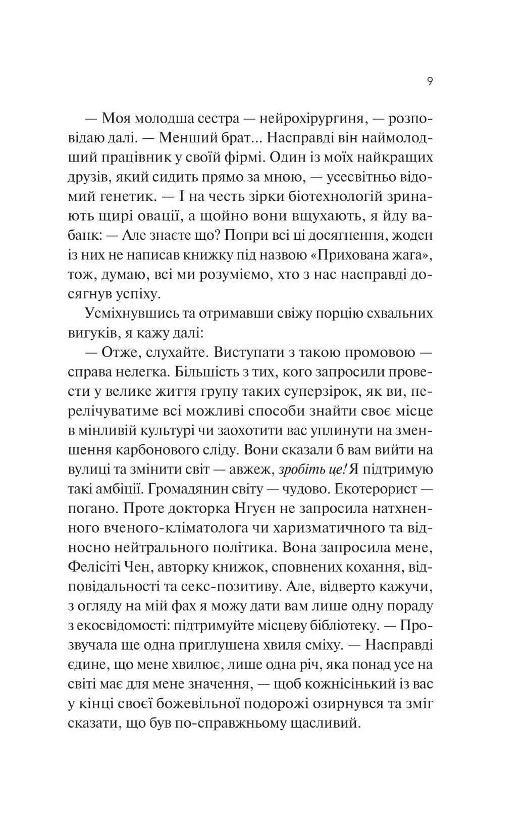 Успішна письменниця Фелісіті (Фіззі) Чен раптом усвідомлює, що живе не так, як радить іншим. Вона ніколи не була закохана, хоч пише про шалене кохання. Власний оптимізм тепер їй видається брехнею.