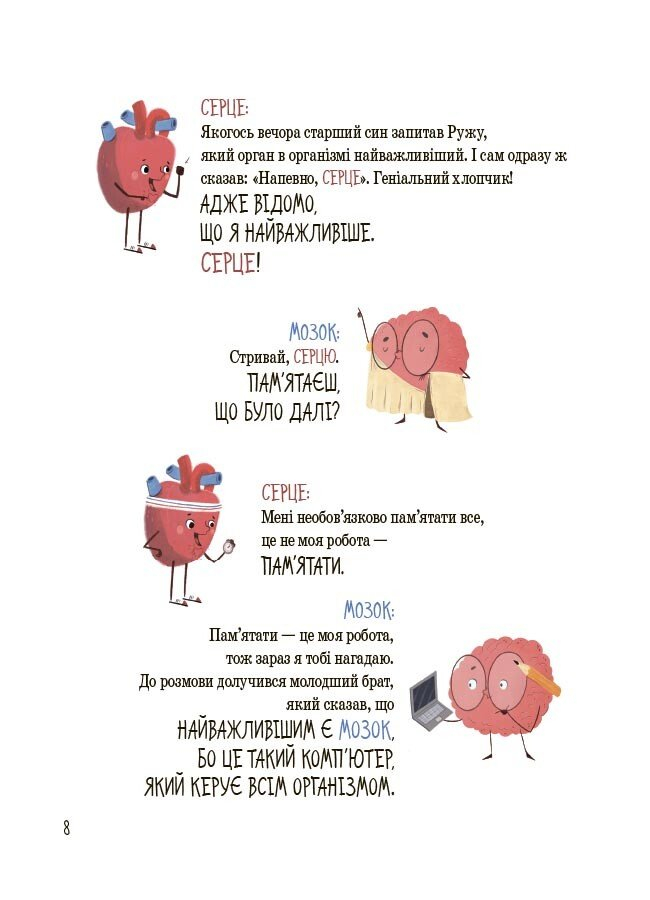 Це не просто дитяча література, а чудовий приклад сучасної популяризації науки. Текст супроводжено яскравими ілюстраціями та прикладами, що роблять пізнання веселим і легким. Книга стане у пригоді для батьків, вчителів та всіх, хто хоче доступно пояснити дитині будову тіла без складної термінології.