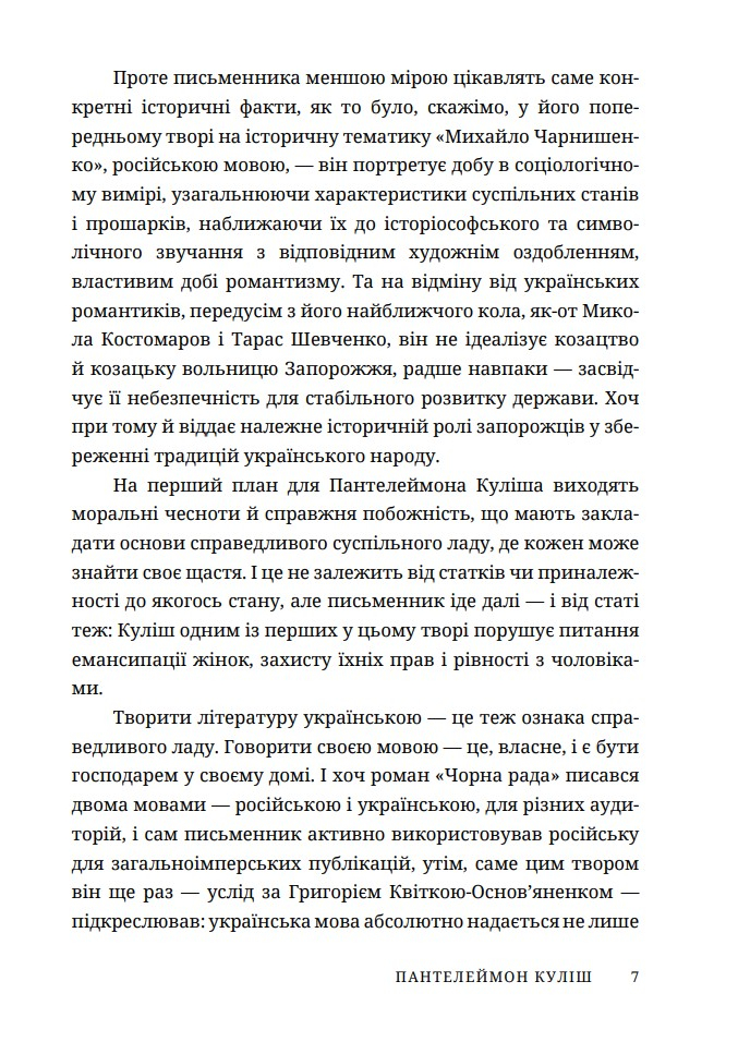 Чорна рада — перший історичний роман в українській літературі, написаний Пантелеймоном Кулішем. Цей знаковий твір став віхою у становленні національної прози й досі зберігає свою глибину та актуальність. Автор вдало поєднує художню реконструкцію історичних подій із соціальними та філософськими роздумами.