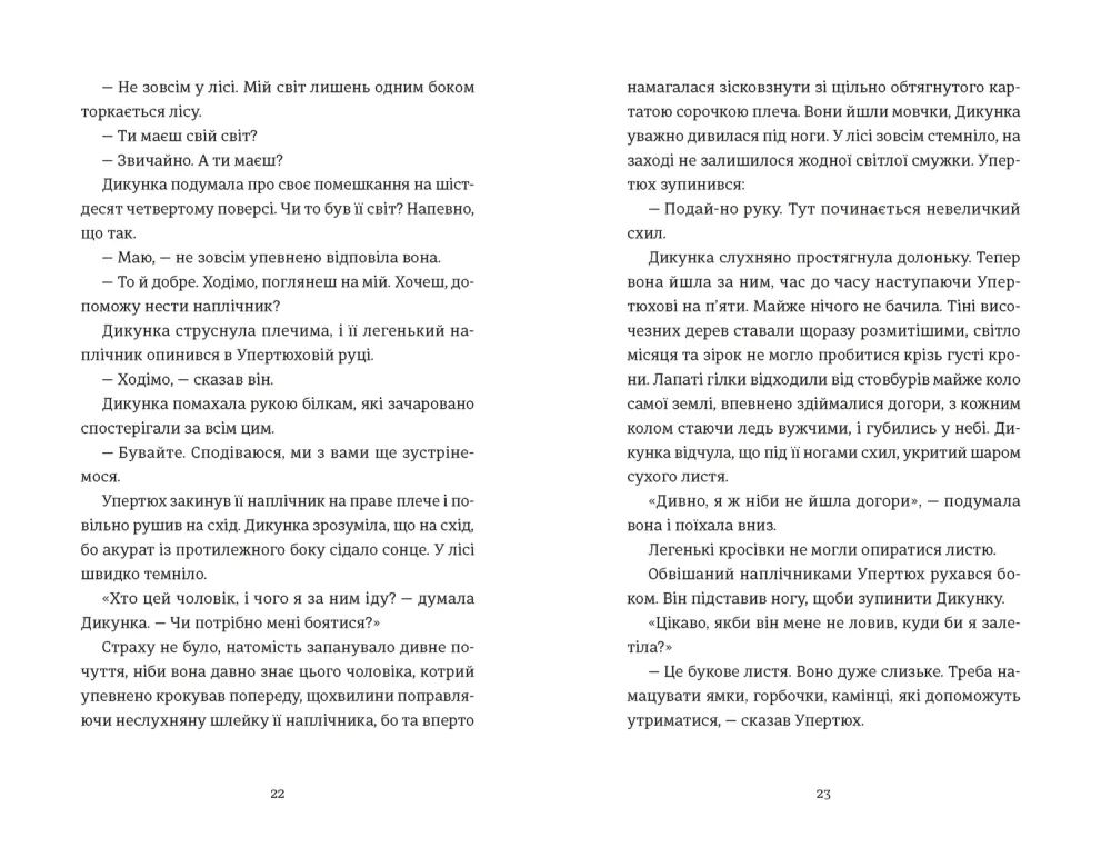 Маленький постмодерний роман Ярини Сенчишин «Упертюх і Дикунка» — це фрагментарна, майже сновидна проза, зосереджена на проблемах становлення й утвердження, крихкості й сили людської особистості та людського співжиття.