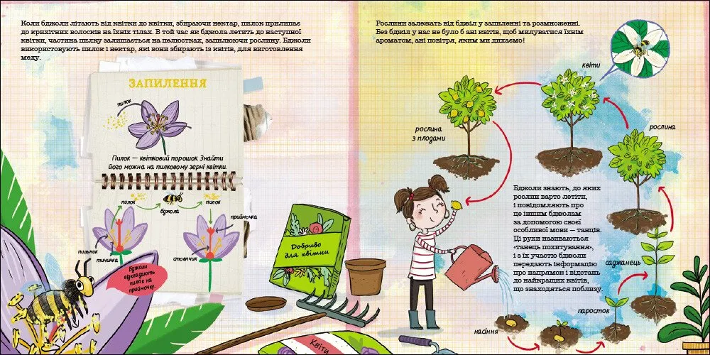 Книга містить кумедні й водночас інформативні ілюстрації, що роблять процес читання ще більш захопливим. Завдання, творчі вправи та прості наукові експерименти допомагають краще зрозуміти прочитане. Зокрема, діти можуть навчитися майструвати готель для комах або створювати їхні портрети.