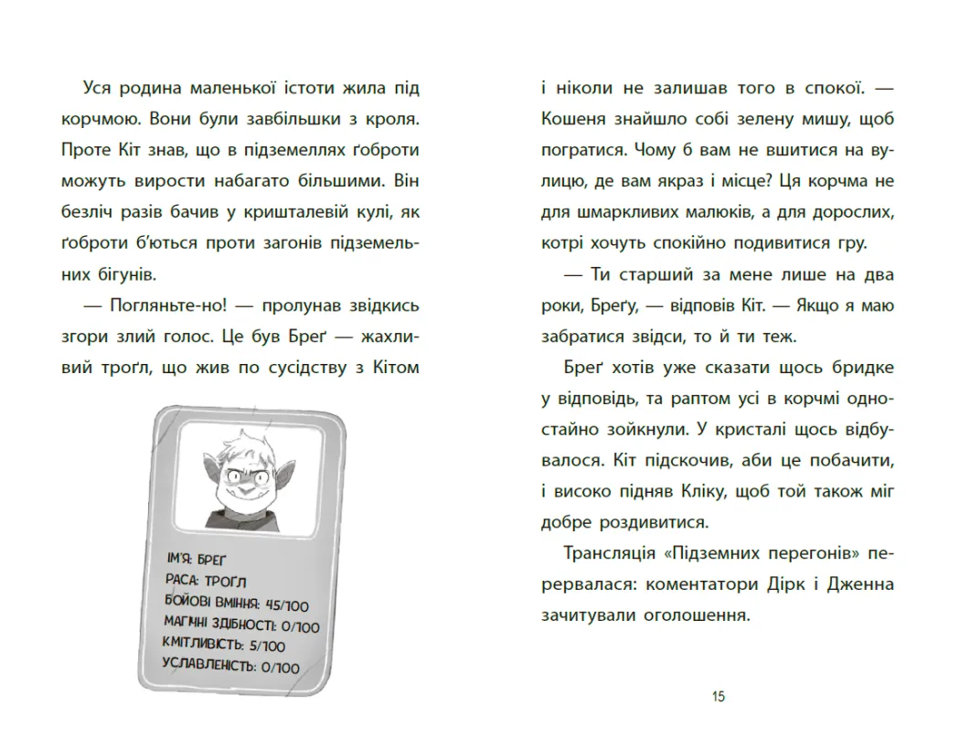 Яскравий пригодницький роман Підземні перегони. Рівень перший: перевірка на міцність, створений талановитим автором Ларвудом Кіраном, захоплює читачів у фантастичний світ, де мешканці міста Гротвіль живуть динамічним життям, сповненим дива і випробувань. У центрі сюжету – ґнорф Кіт Кітсон, який вирішує прийняти виклик та долучитися до небезпечних, але популярних змагань на материку Зерб.