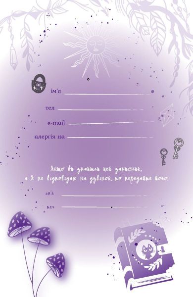 Магічний записник – це не просто місце для записів. Завдяки візуальному оформленню він перенесе тебе у світ магії, таємничий і прихований, додасть яскравих барв до повсякденного життя. А твої робочий стіл чи сумка отримають особливий шарм. Обкладинка цього блокнота теж не проста. Вона має отвір і слугує порталом, що перенесе тебе у загадковий світ твого Я: • записуй свої думки, враження • плануй свій час, складай списки справ • занотовуй спостереження, міркування Записник припаде до душі всім, хто любить щось оригінальне. Це чудовий подарунок собі чи подрузі, чи сестрі, а особливо, коли вони цікавляться темою магії та чарівництва.