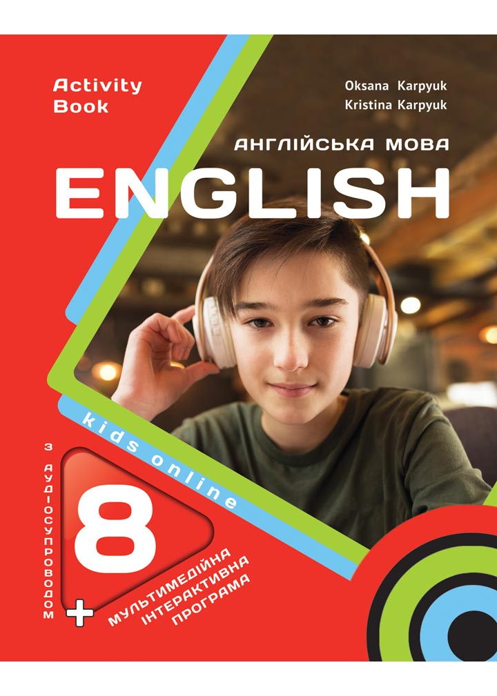 Робочий зошит Activity Book 8 є невід'ємною частиною навчально-методичного комплексу English 8. Kids Online для 8 класу Нової української школи. Авторками видання є відомі педагогині Оксана Карпюк та Катерина Карпюк. Цей зошит створено спеціально для учнів, які працюють за підручником English 8, і допомагає краще засвоїти англійську мову за новітніми підходами освіти.