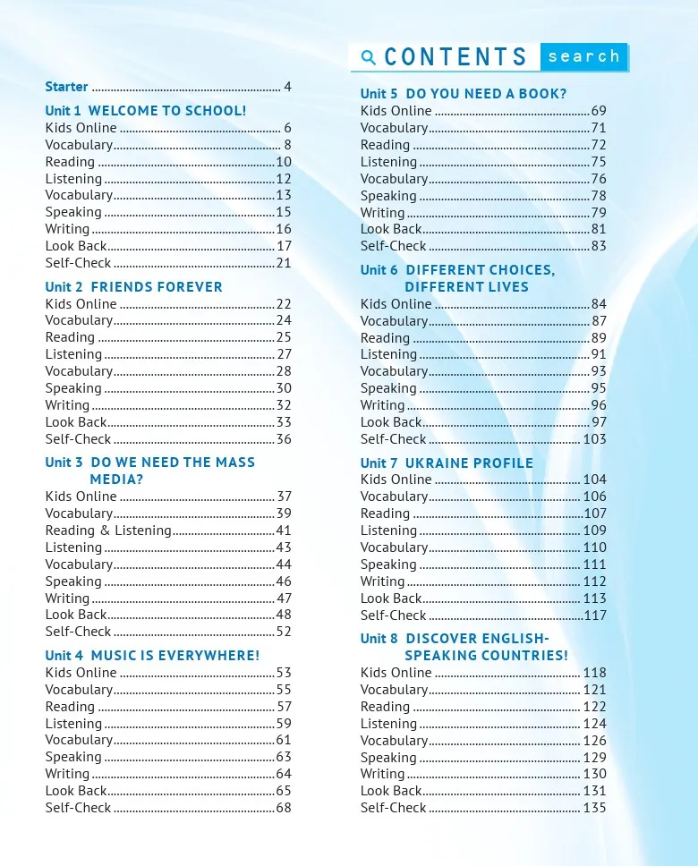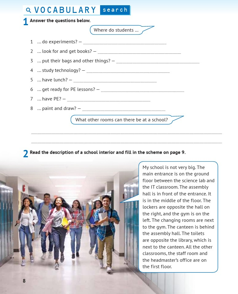 У Activity Book 8 містяться різноманітні вправи: від граматичних до лексичних, а також завдання на розвиток читання, письма та говоріння. Кожен розділ зошита відповідає відповідному розділу підручника, що забезпечує логічну та поетапну роботу із матеріалом на уроках і вдома.