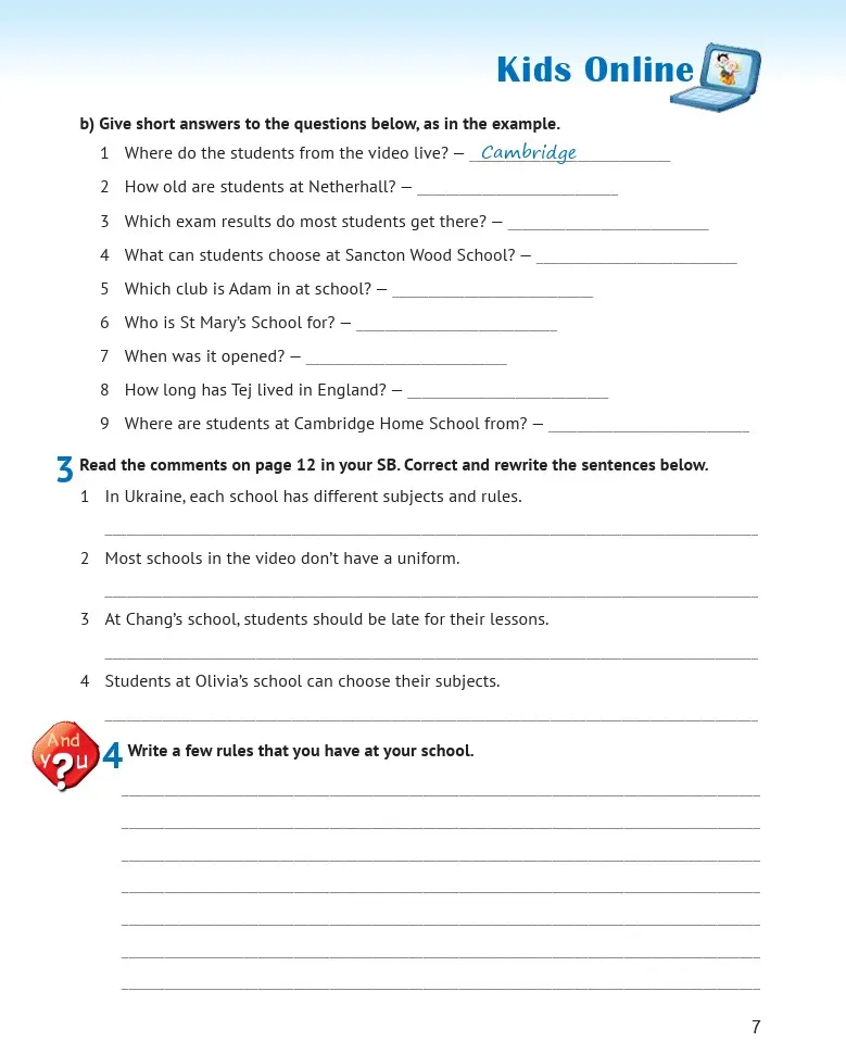 Карпюк Оксана Підручник English 7. Kids Online НУШ для 7 класу