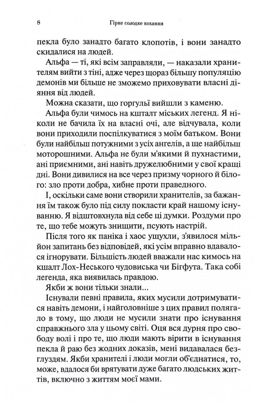 Книга Гірке солодке кохання — це приквел до захопливої серії Темні елементи від популярної американської письменниці Дженніфер Л. Арментраут. Цей роман розкриває історію кохання між Жасмін та Дезом — двома Хранителями, які стоять на межі війни між світлом і темрявою.