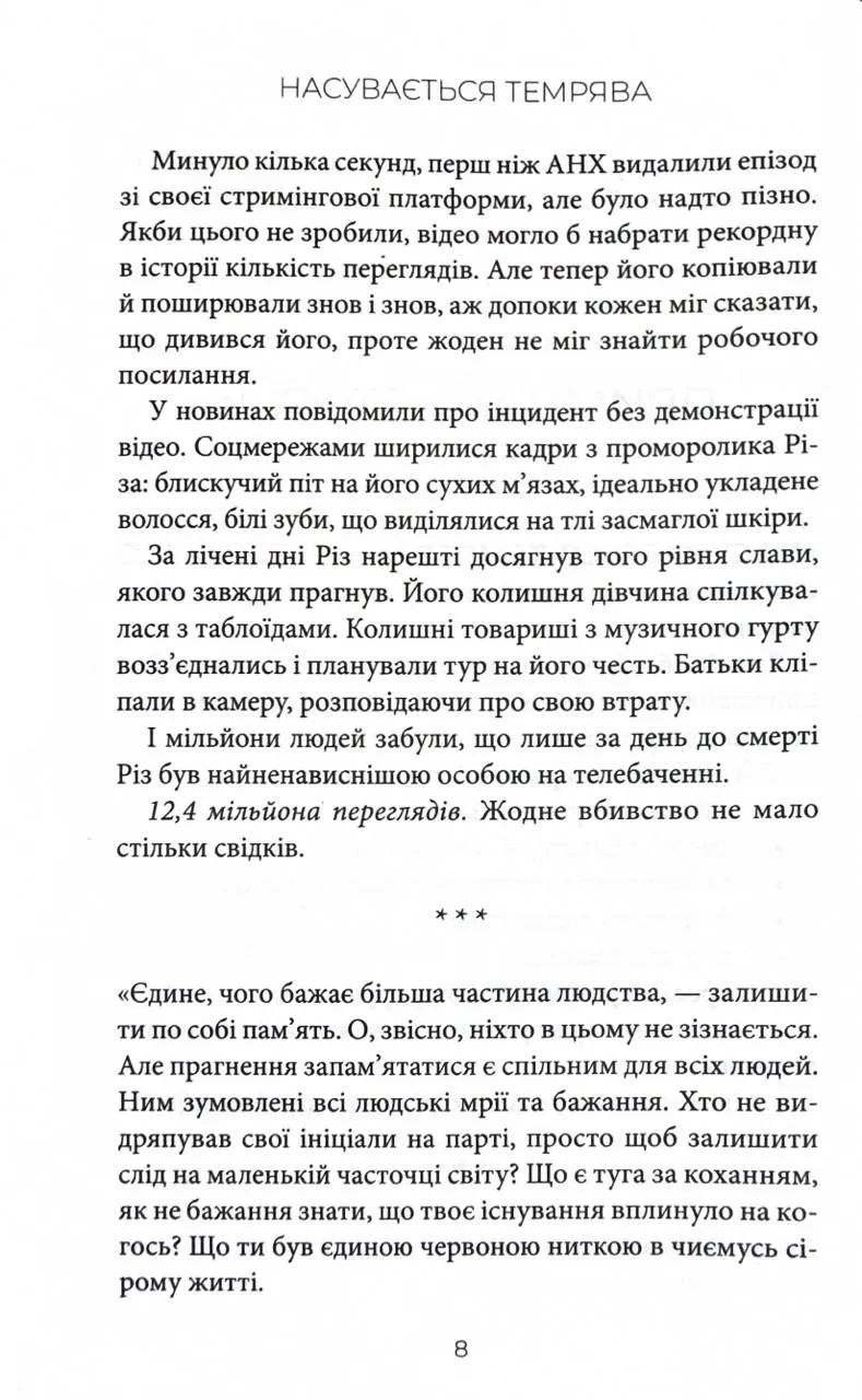 Книга є яскравим прикладом сучасного трилеру, що зачіпає моральне обличчя сучасності, силу громадської думки та темну сторону слави. Якщо ви любите багатошарові розповіді з детективним підтекстом — цей роман стане справжнім відкриттям.