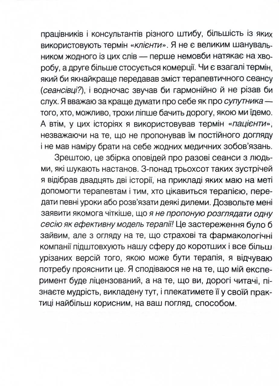 - Історії терапевтичних сесій у форматі однієї години