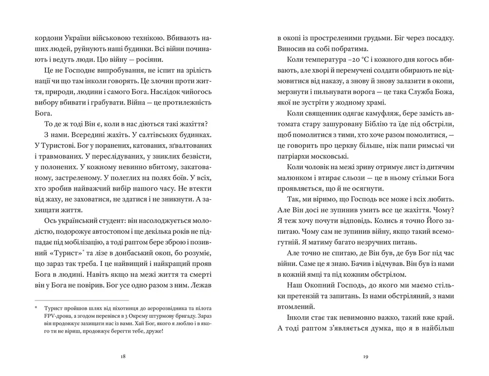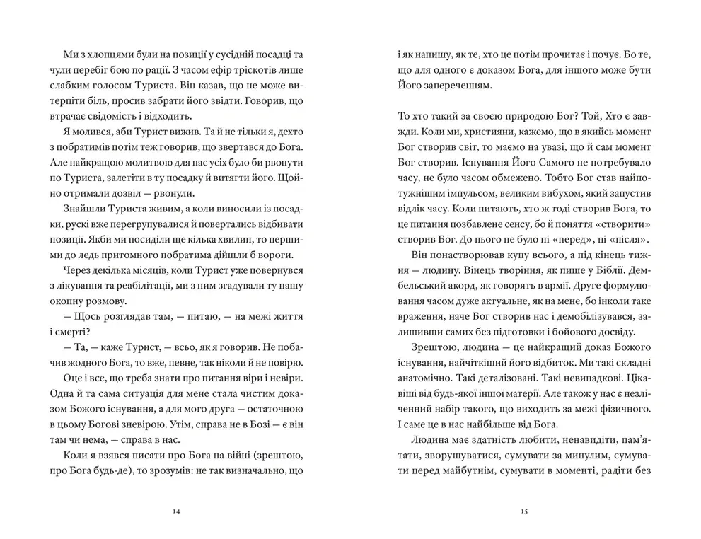 Ця збірка короткої прози — це не просто вигадані історії. Вони засновані на авторському досвіді під час війни. Тут знайдете теми віри, страху, доблесті і побратимства. Читач поринає в емоційний спектр, який відчуває кожен солдат — від відчаю до любові.