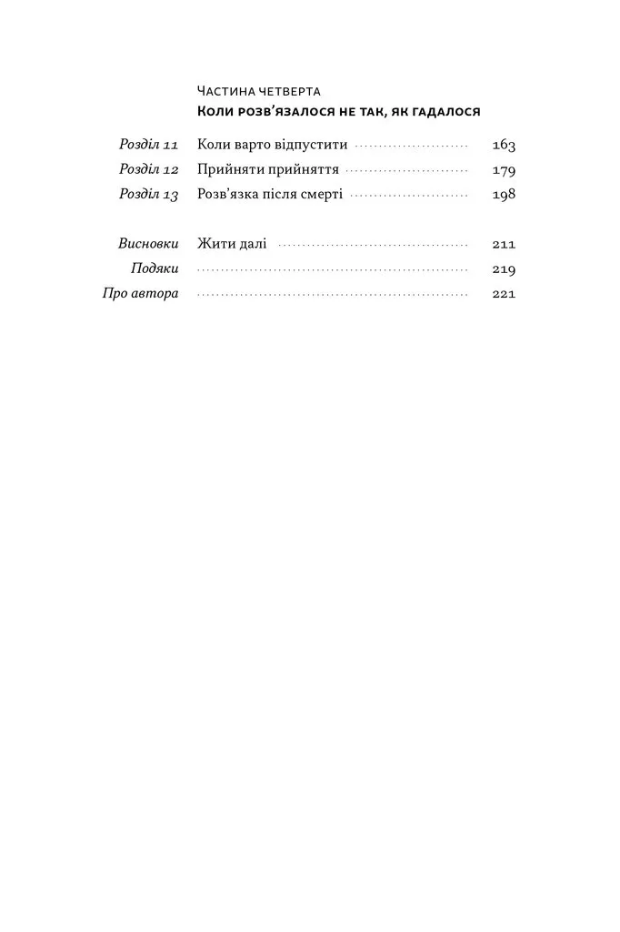 У цьому виданні розкрито не лише теоретичні аспекти примирення, а й застосовані терапевтичні техніки. Автор допомагає навчитися відпускати образи, перестати жити в тіні минулого та рухатись уперед з відкритим серцем.